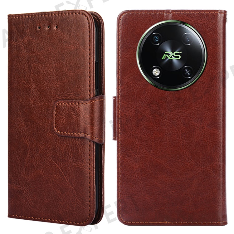 For itel RS4 4G Case Leather Wallet Phone Cover with Viewing Stand 2 Card Holder - Brown