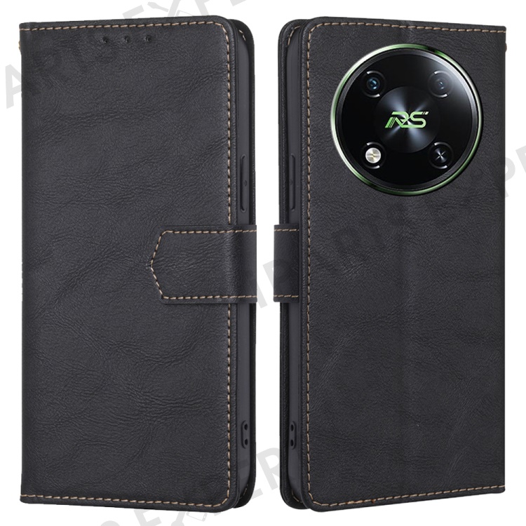 For itel RS4 4G Wallet Case Magnetic Clasp Leather Phone Cover with RFID Blocking - Black