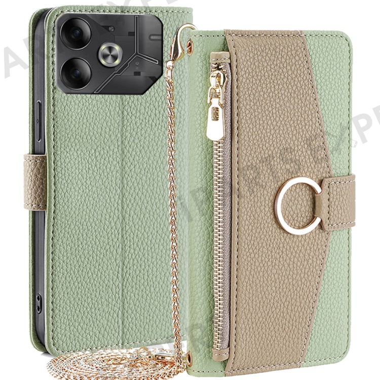 For TECNO Pova 6 5G Case Zipper Wallet Mirror Leather Cover Cell Phone Accessories Wholesale - Green