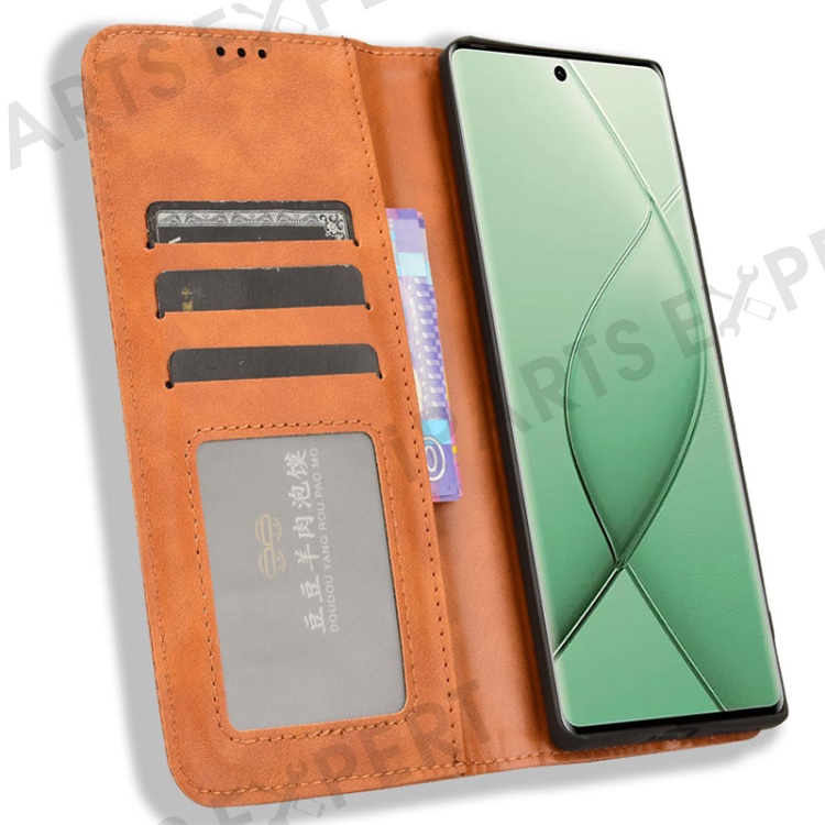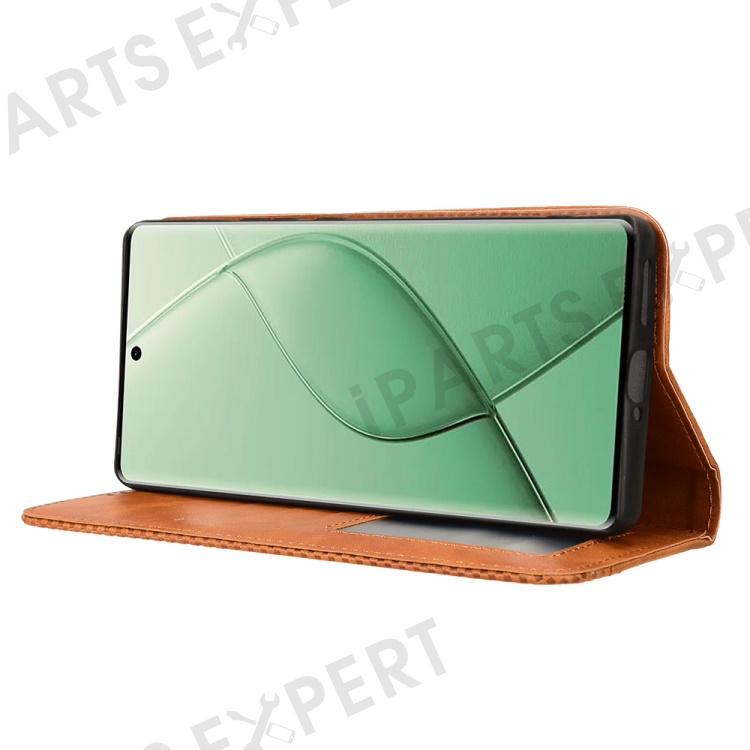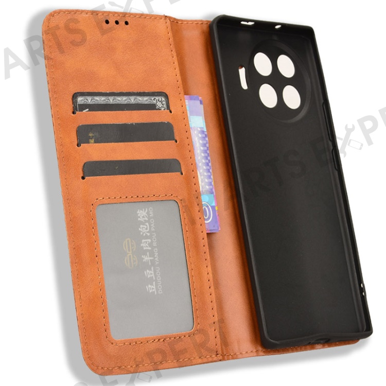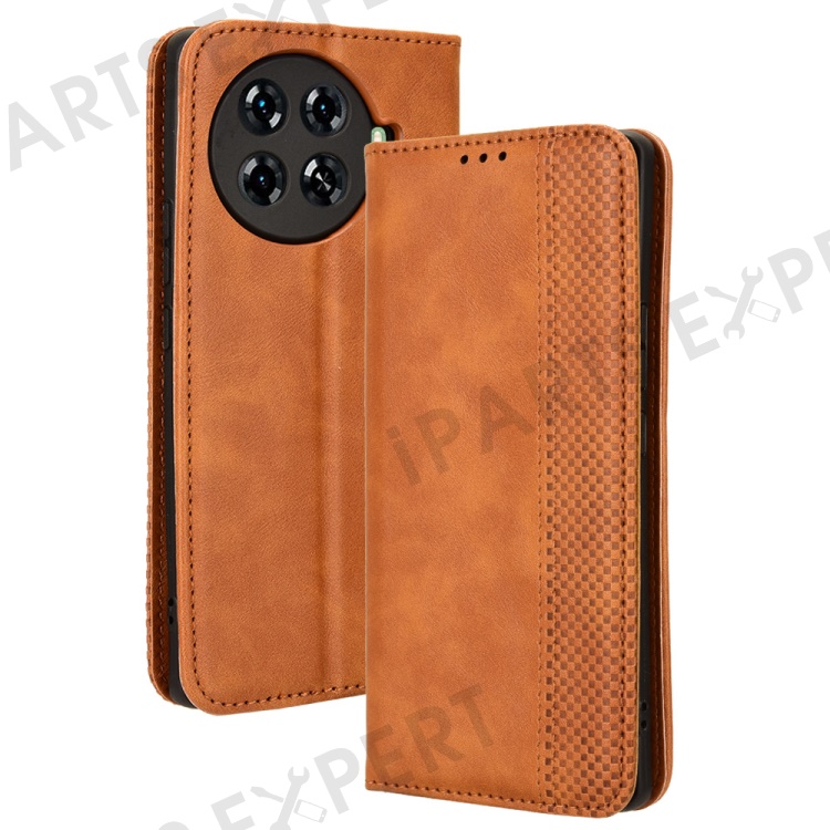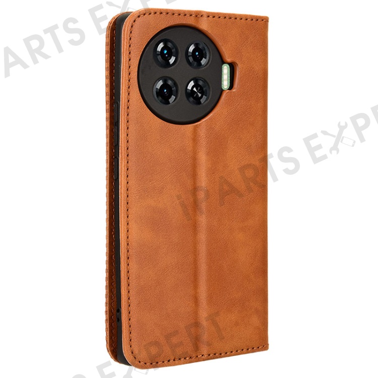 For TECNO Spark 20 Pro+ KJ7 Case Leather Magnetic Closure Wallet Flip Phone Cover - Brown