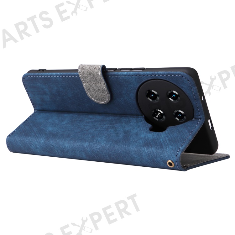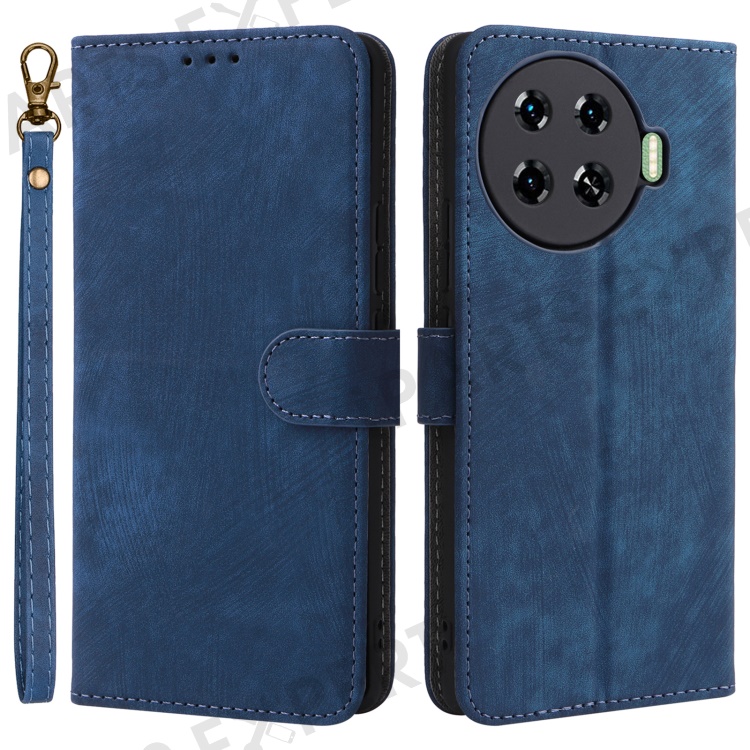 For TECNO Spark 20 Pro+ KJ7 Case with Hand Strap RFID Blocking Wallet Leather Cover - Blue