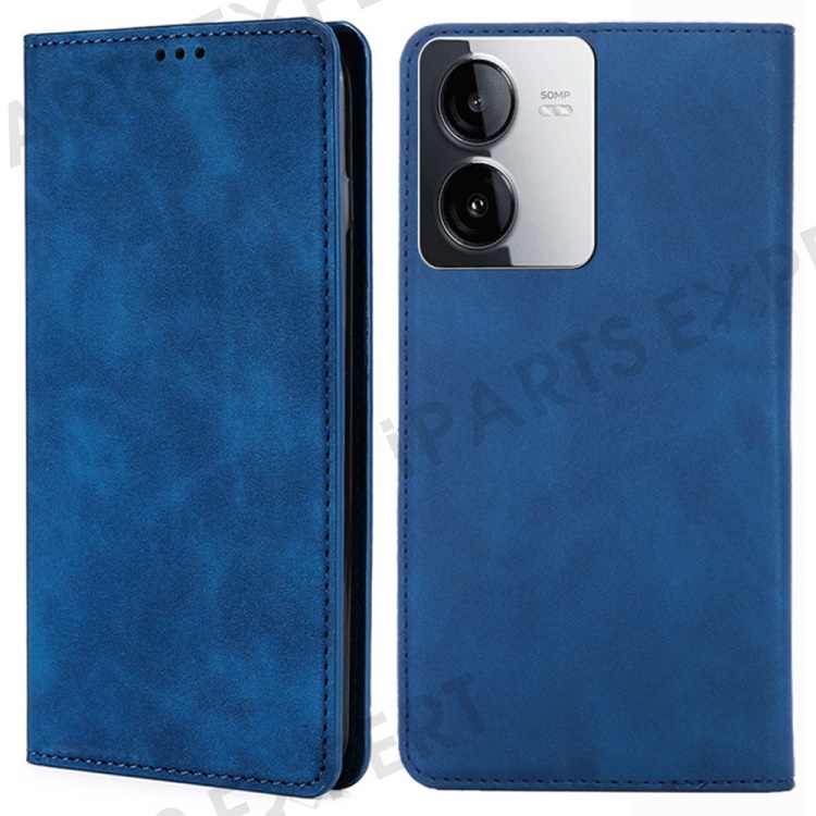 For vivo iQOO Z8x 5G / Y78t 5G Phone Case Card Holder Slots Leather Stand Flip Cover - Blue