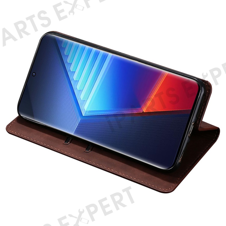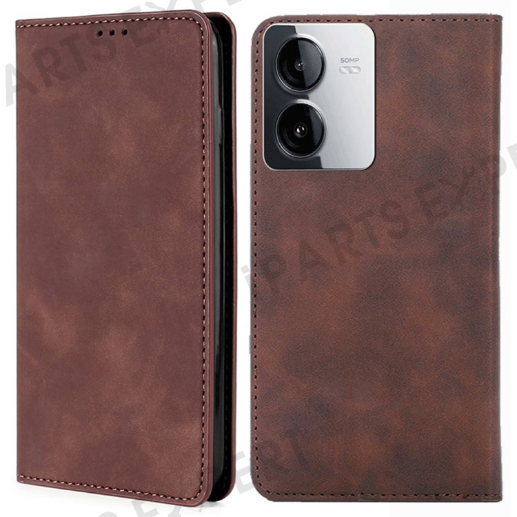 For vivo iQOO Z8x 5G / Y78t 5G Phone Case Card Holder Slots Leather Stand Flip Cover - Dark Brown