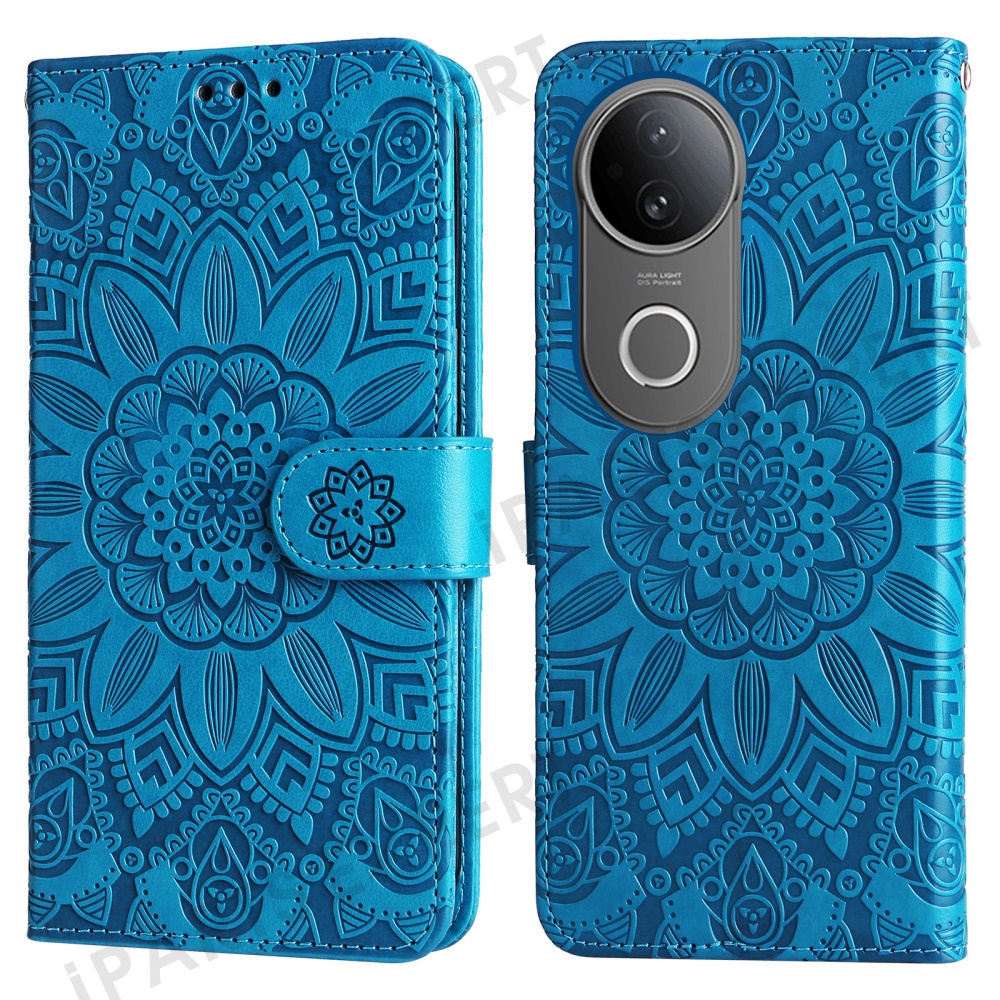 For vivo S20 5G Case Sunflower Imprint Leather Wallet Phone Cover - Blue