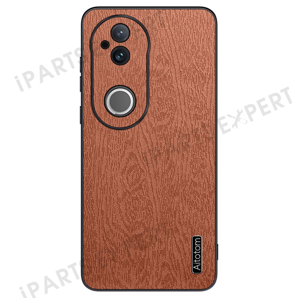 For vivo S20 5G Case Wood Texture PU Leather Coated PC TPU Phone Cover - Brown