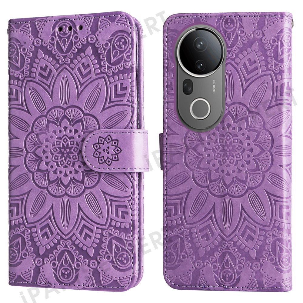 For vivo S20 Pro 5G Case Sunflower Imprint Leather Wallet Phone Cover - Purple