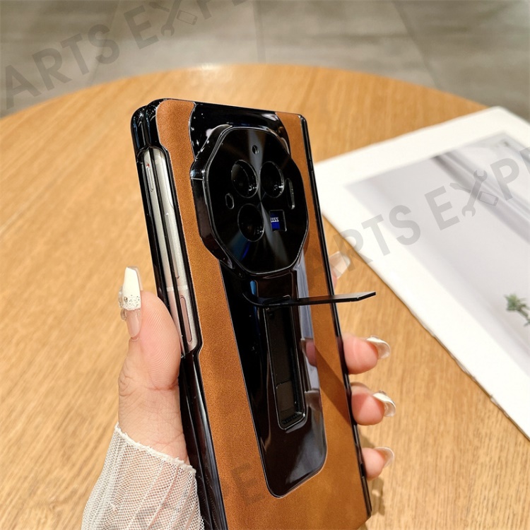 For vivo X Fold3 Case PU Leather+PC Shockproof Phone Cover with PET Film - Black