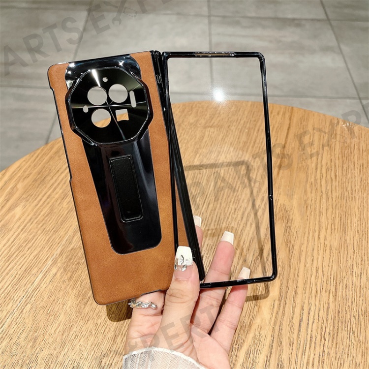 For vivo X Fold3 Case PU Leather+PC Shockproof Phone Cover with PET Film - Red