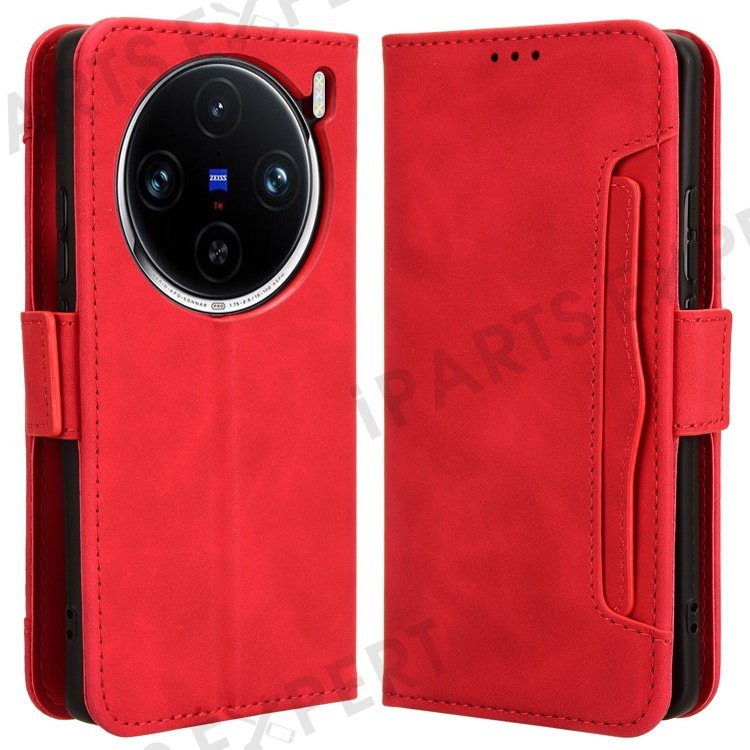 For vivo X100 5G Case Multiple Card Slots Function Wallet Leather Phone Cover - Red
