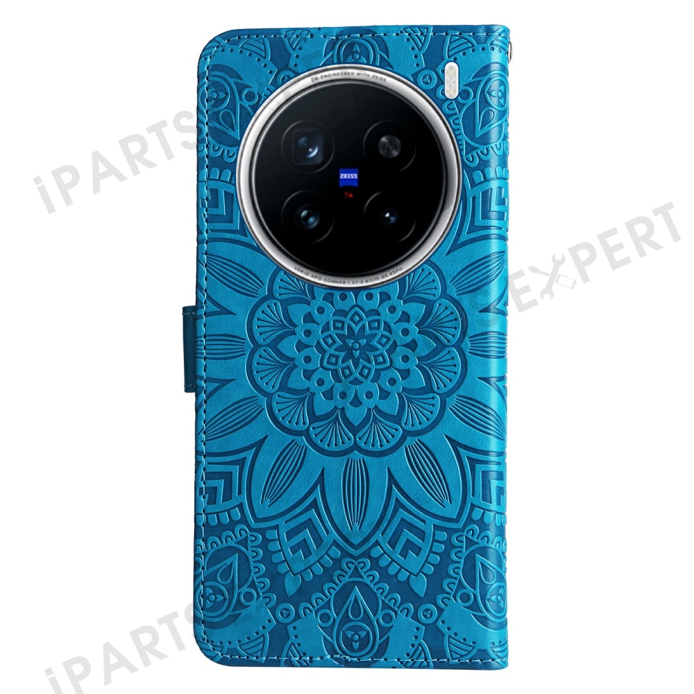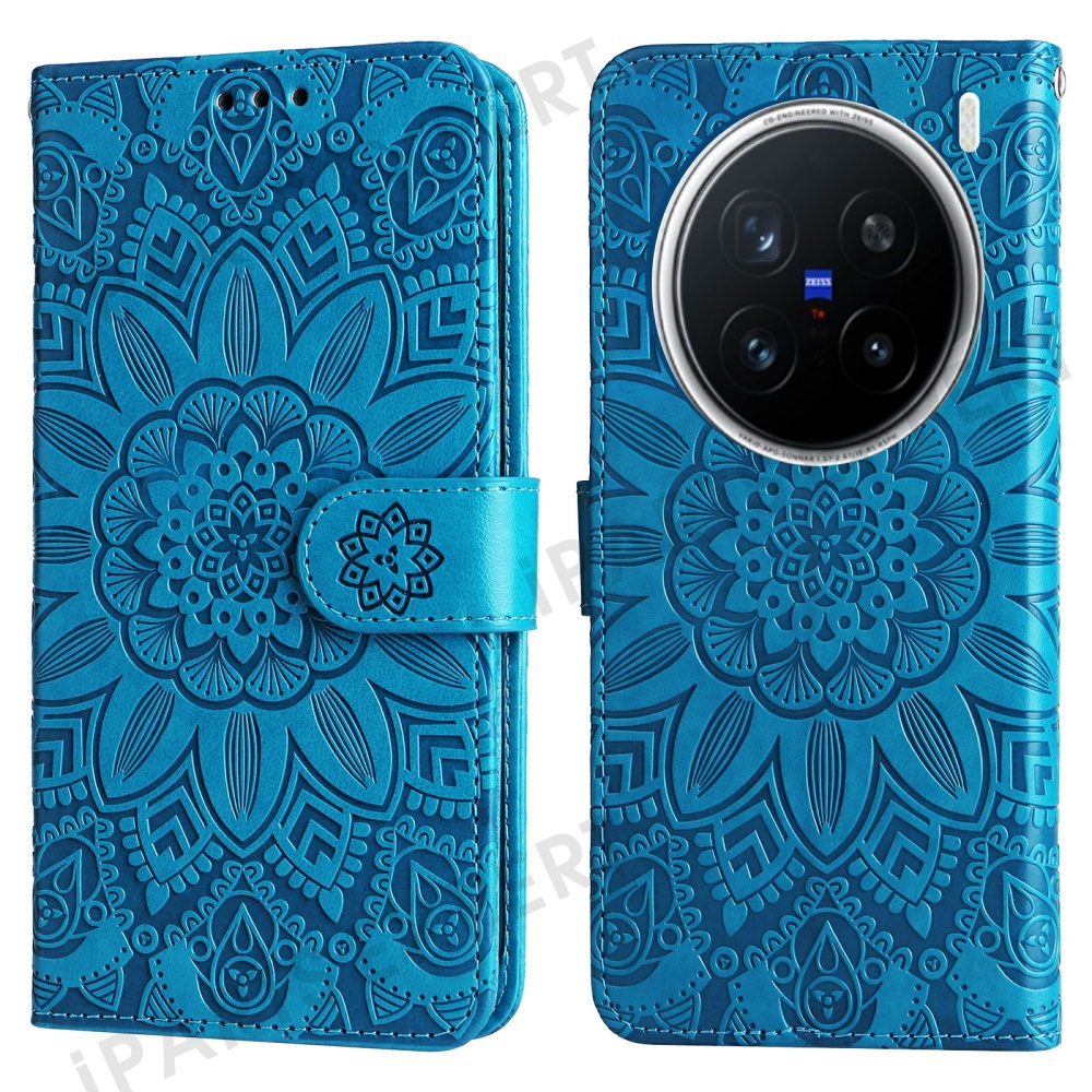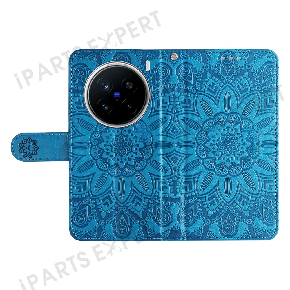 For vivo X200 Pro 5G Case Sunflower Imprint Leather Wallet Phone Cover - Blue