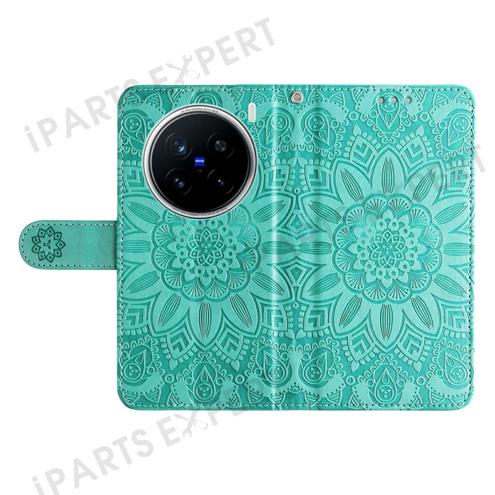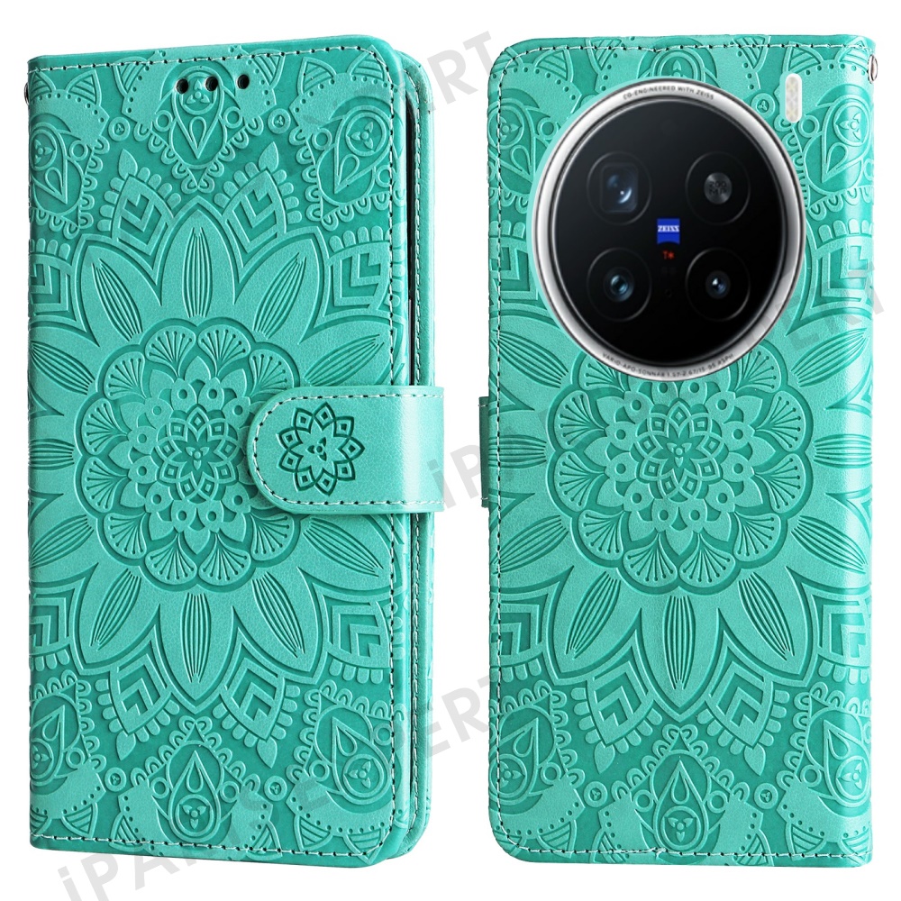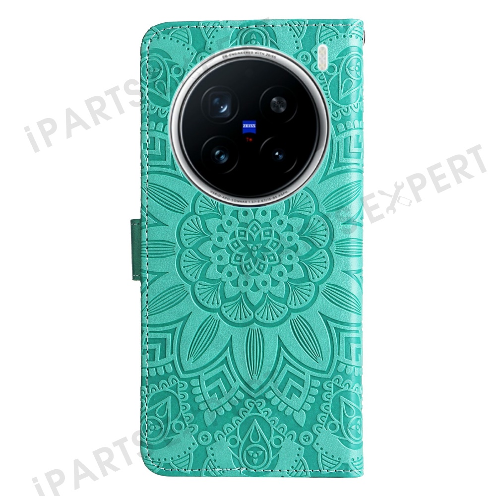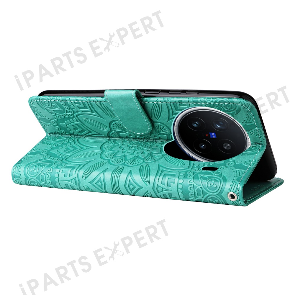 For vivo X200 Pro 5G Case Sunflower Imprint Leather Wallet Phone Cover - Green