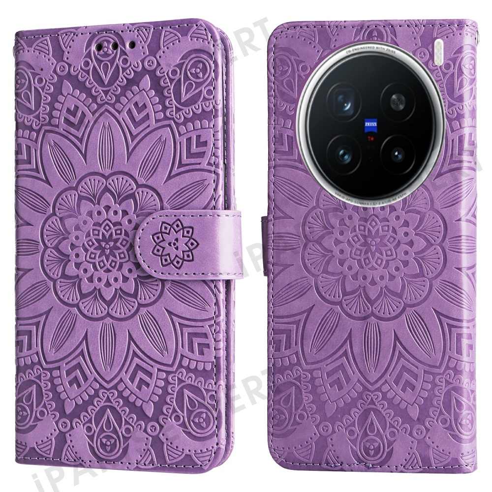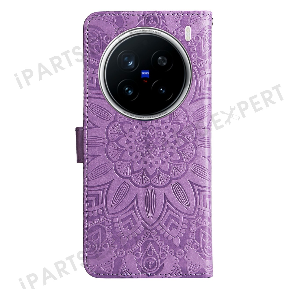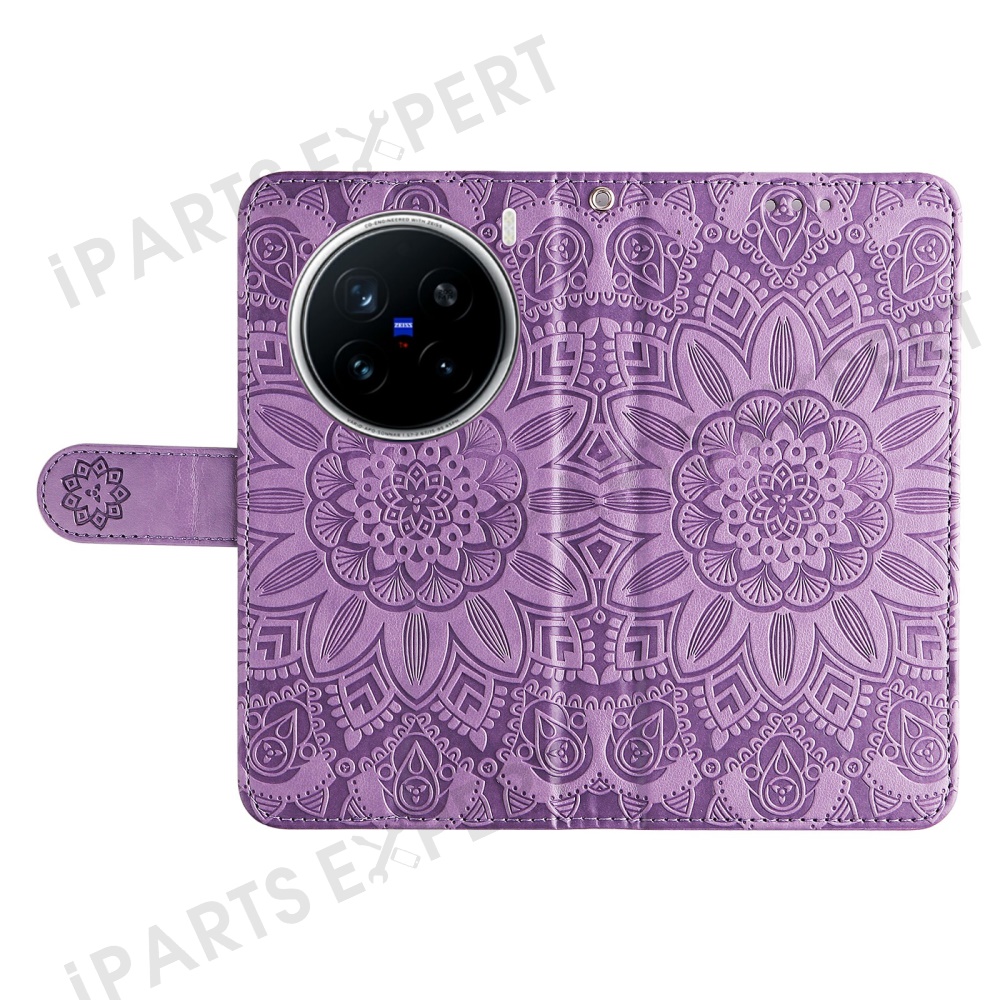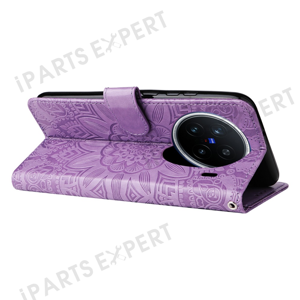 For vivo X200 Pro 5G Case Sunflower Imprint Leather Wallet Phone Cover - Purple