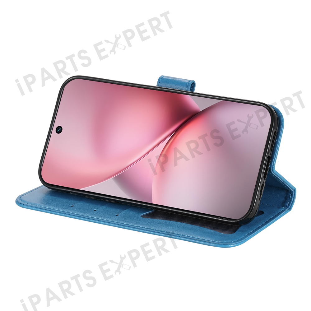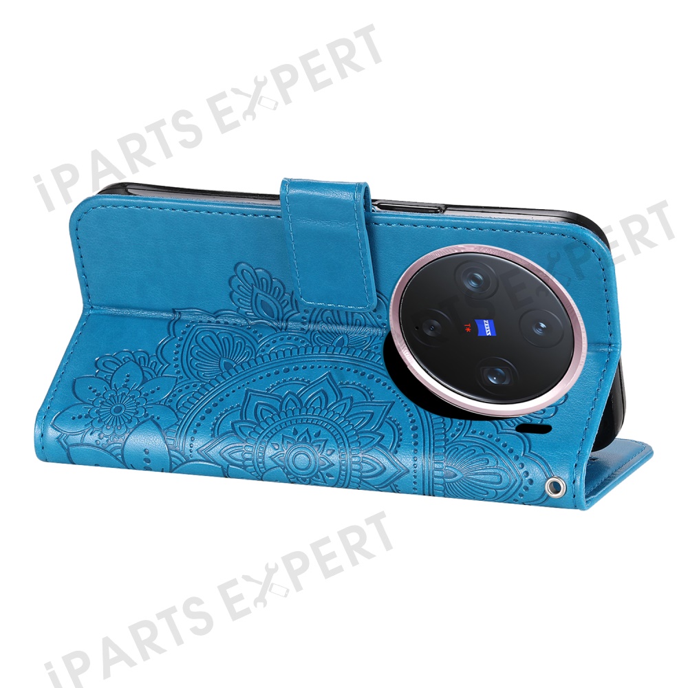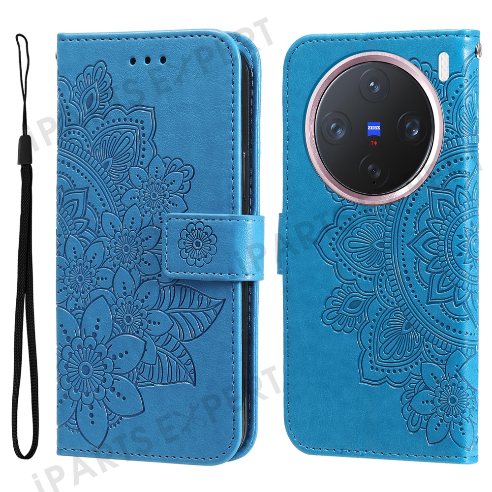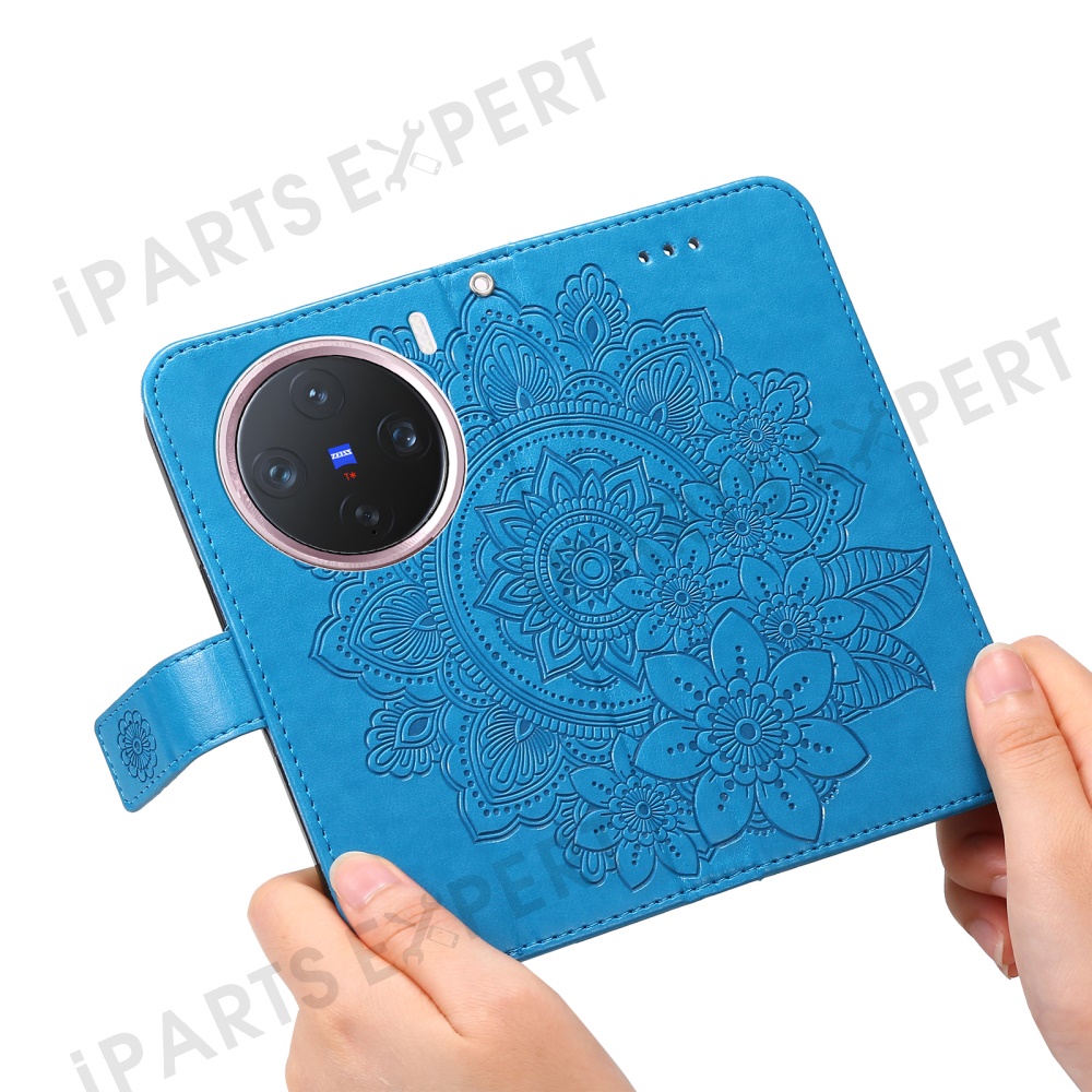 For vivo X200 Pro mini 5G Case Floral Pattern PU Leather Wallet Stand Phone Cover - Blue
