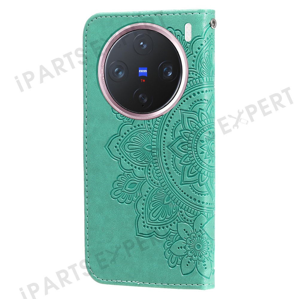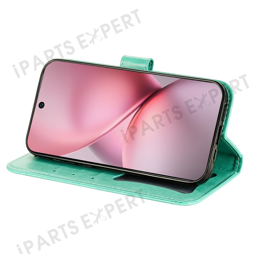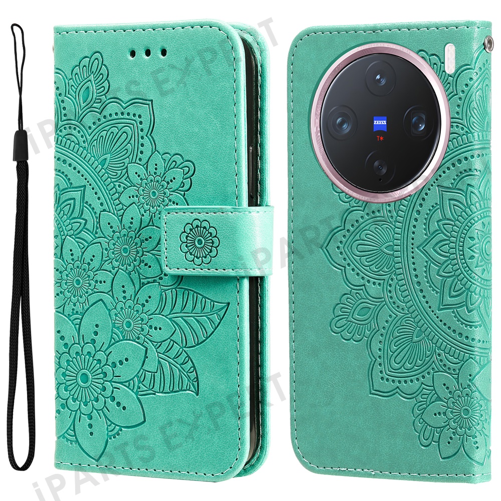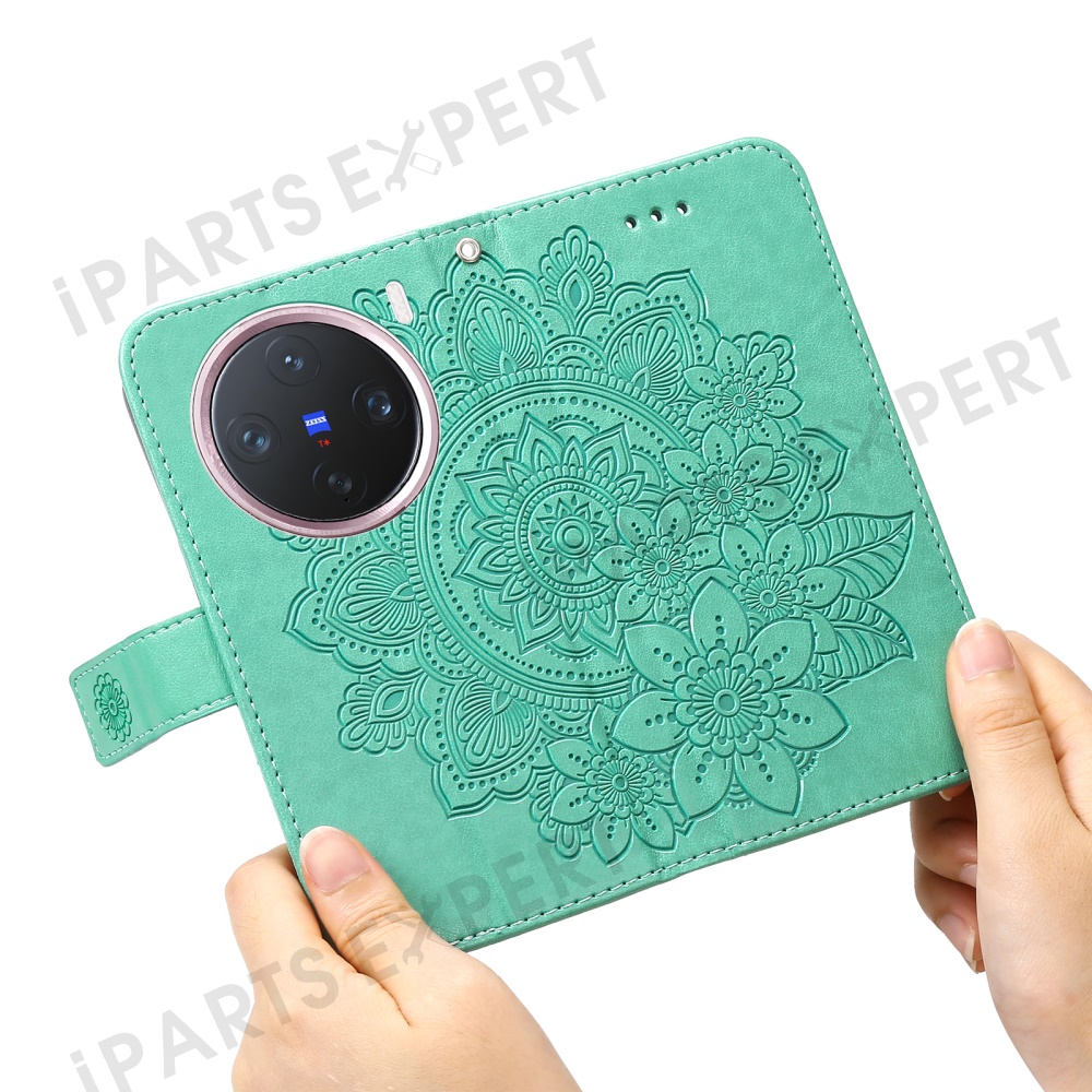 For vivo X200 Pro mini 5G Case Floral Pattern PU Leather Wallet Stand Phone Cover - Green