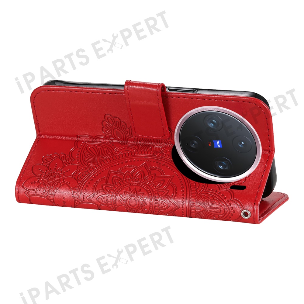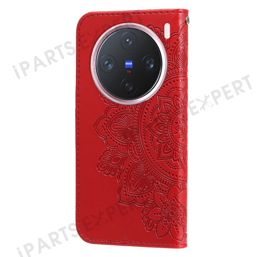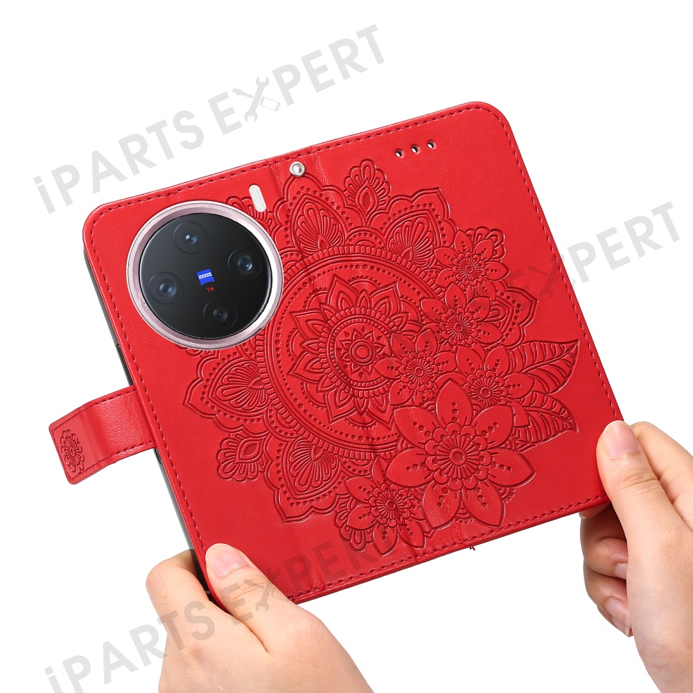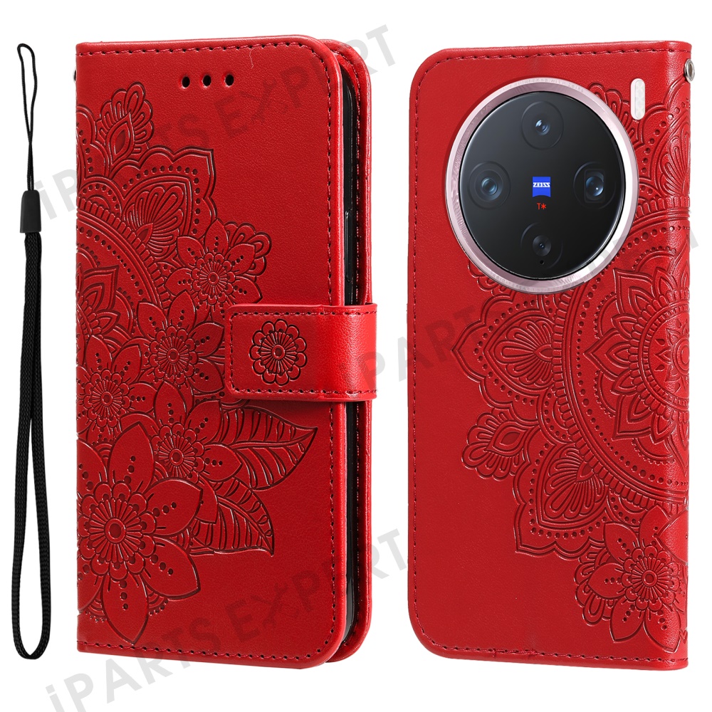 For vivo X200 Pro mini 5G Case Floral Pattern PU Leather Wallet Stand Phone Cover - Red