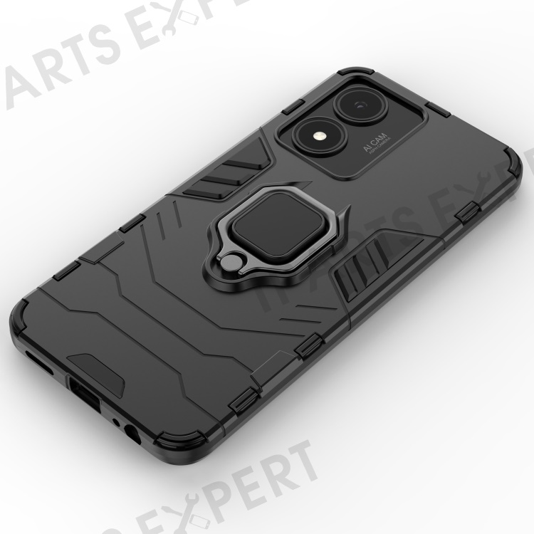 For vivo Y02s 4G Phone Case Ring Kickstand Hybrid Hard PC Soft TPU Shockproof Protective Cover - Black