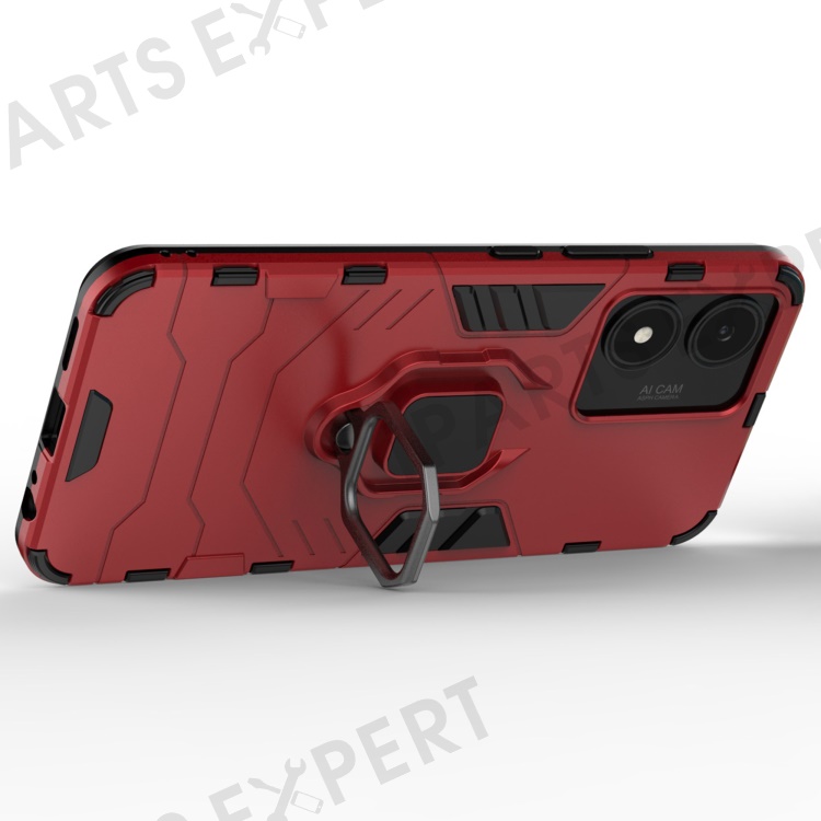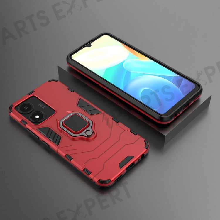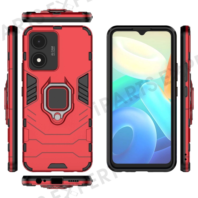 For vivo Y02s 4G Phone Case Ring Kickstand Hybrid Hard PC Soft TPU Shockproof Protective Cover - Red