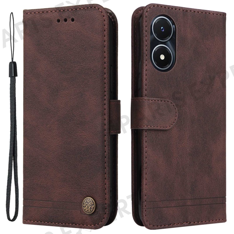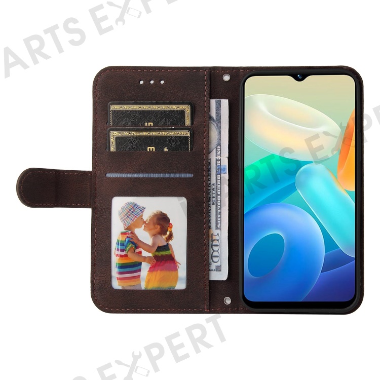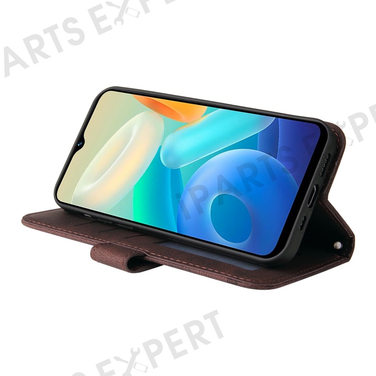 For vivo Y02s 4G / Y16 4G Leather Wallet Cases Skin Touch Phone Cover Stand with Strap - Brown