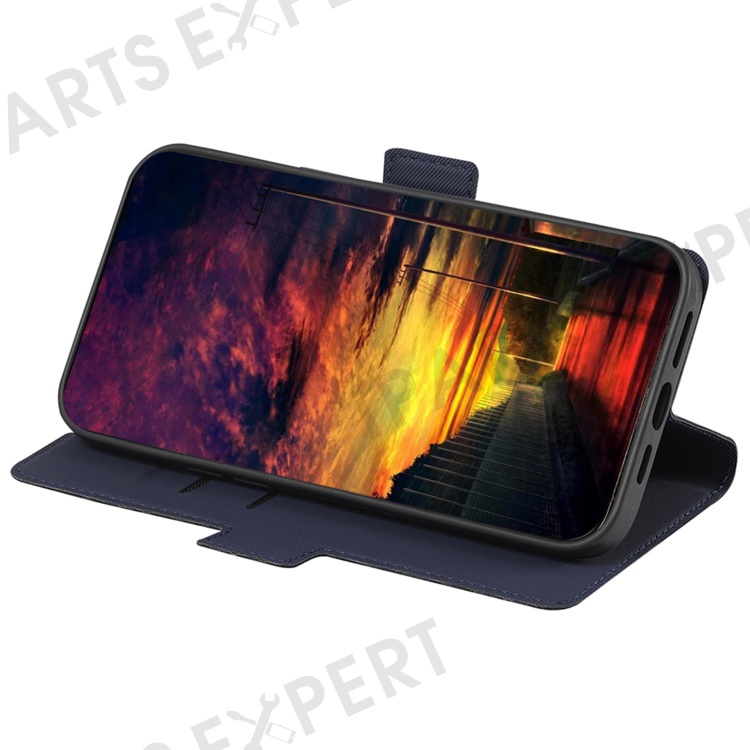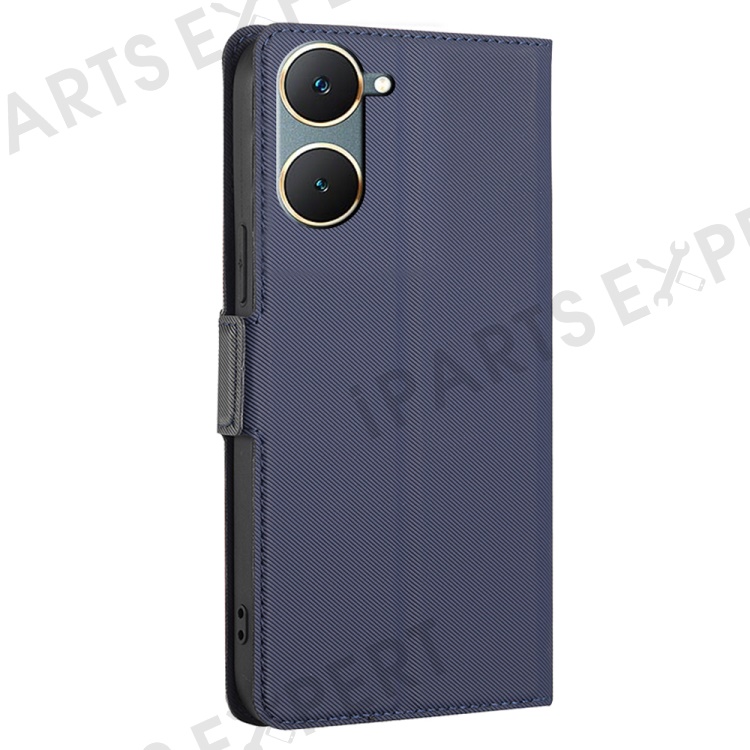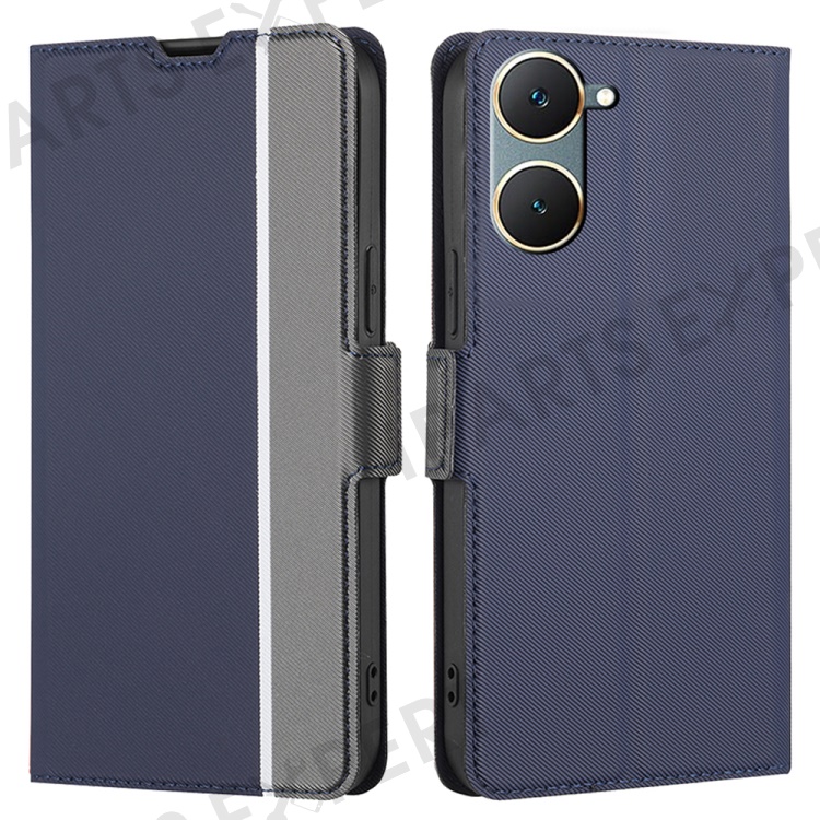 For vivo Y03 Case Card Holder Scratch Proof Twill Texture Leather Phone Cover - Blue
