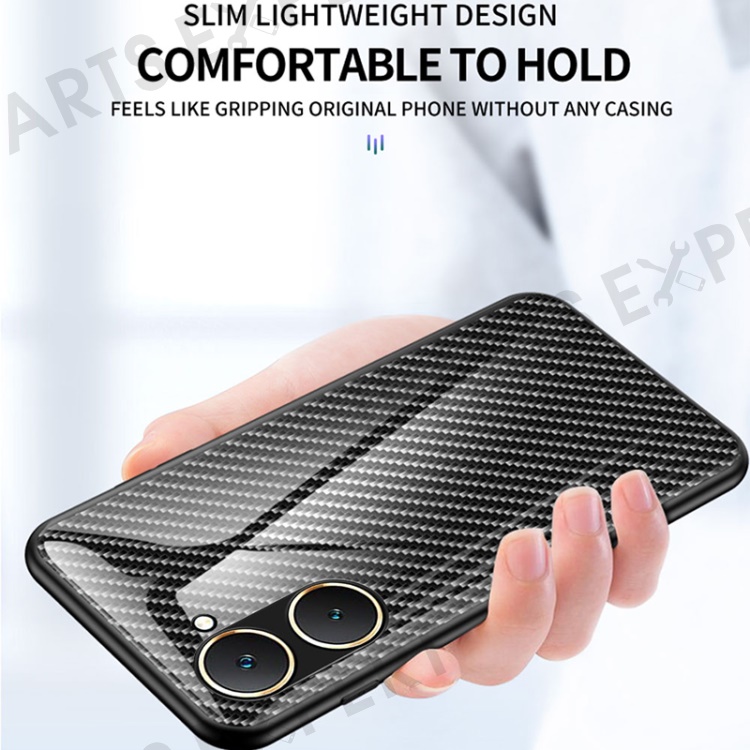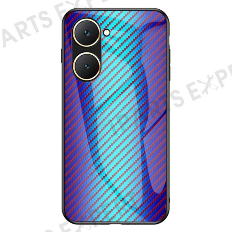 For vivo Y03 Tempered Glass Case Carbon Fiber Texture Anti-drop Phone Cover - Blue Fiber