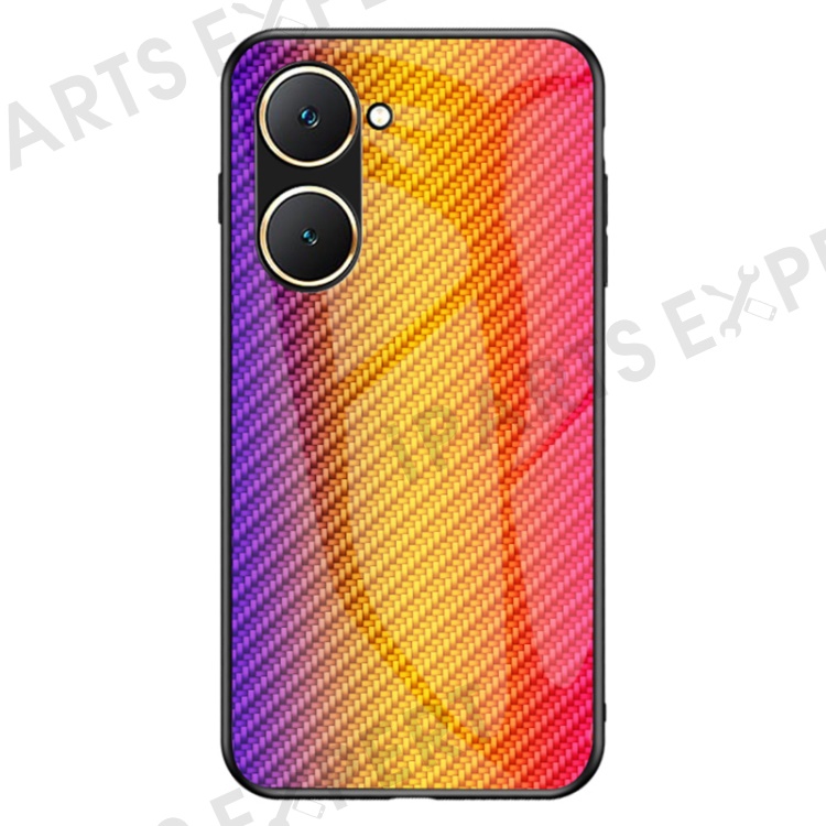 For vivo Y03 Tempered Glass Case Carbon Fiber Texture Anti-drop Phone Cover - Golden Fiber