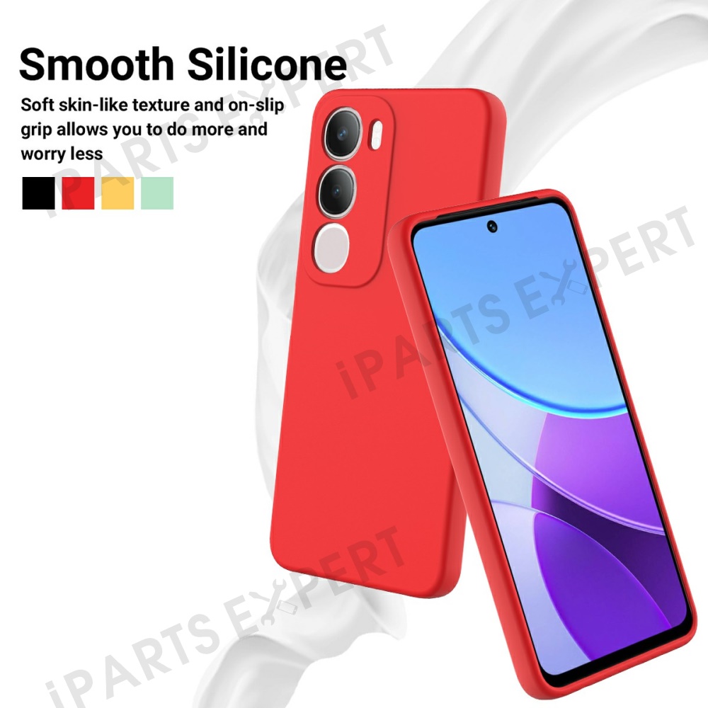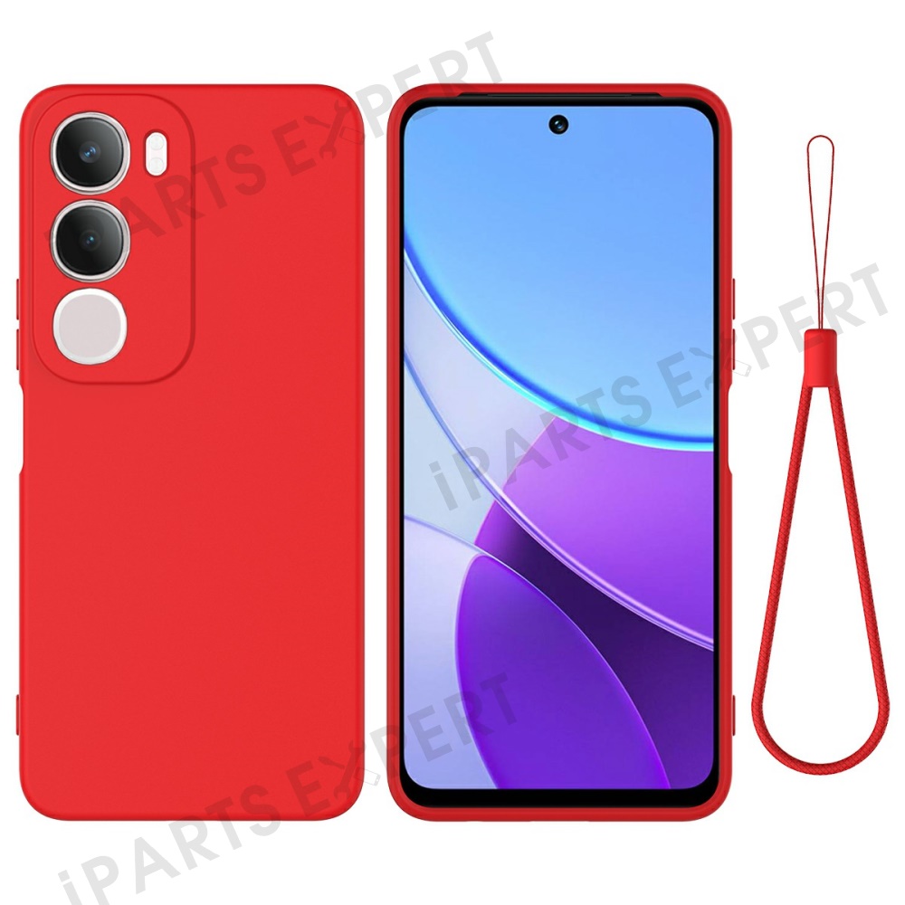 For vivo Y19s 4G Case Liquid Silicone Phone Back Cover with Hand Strap - Red