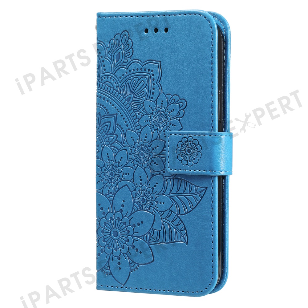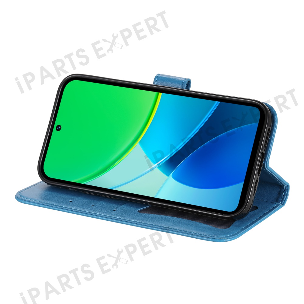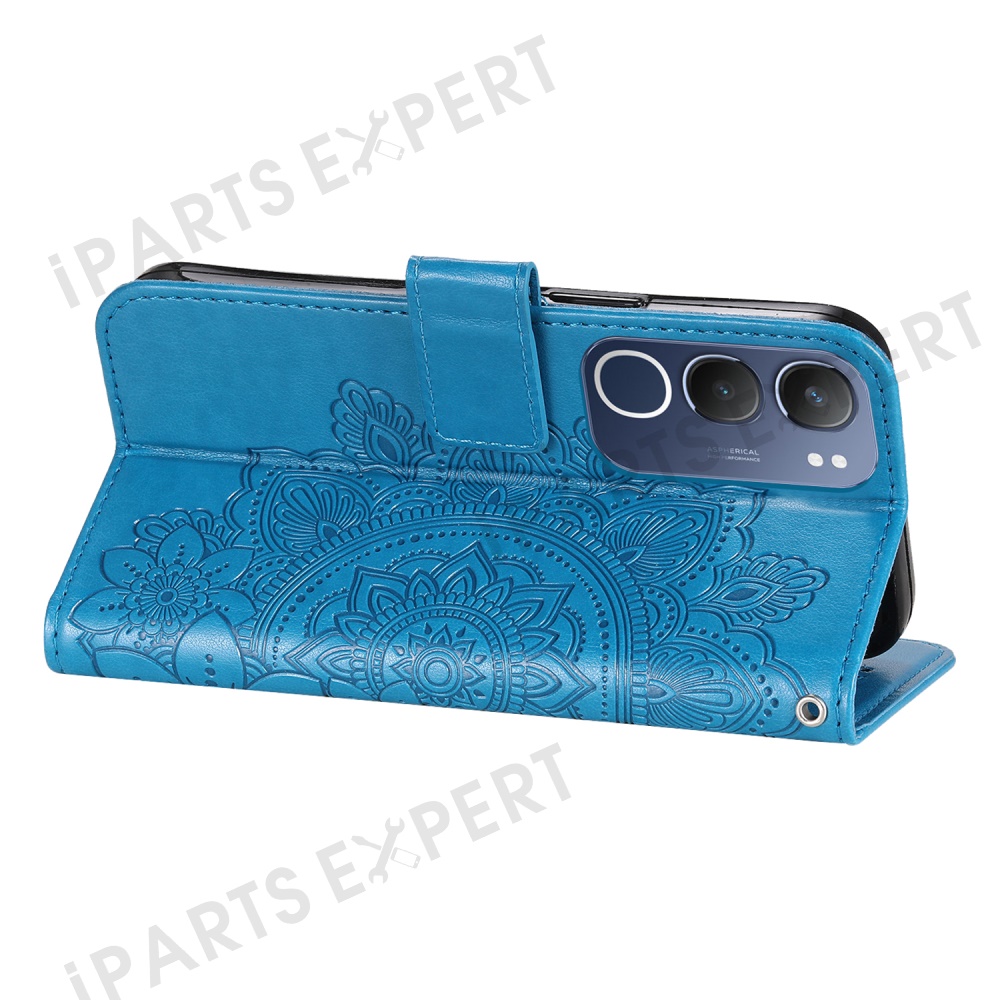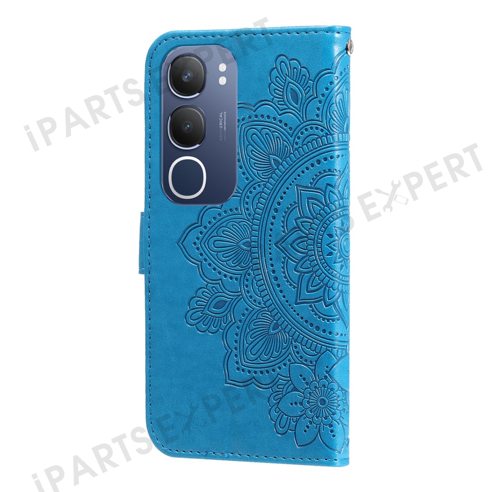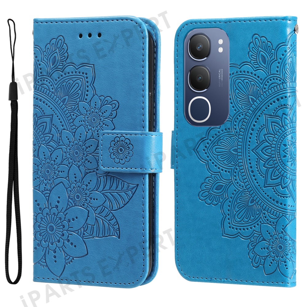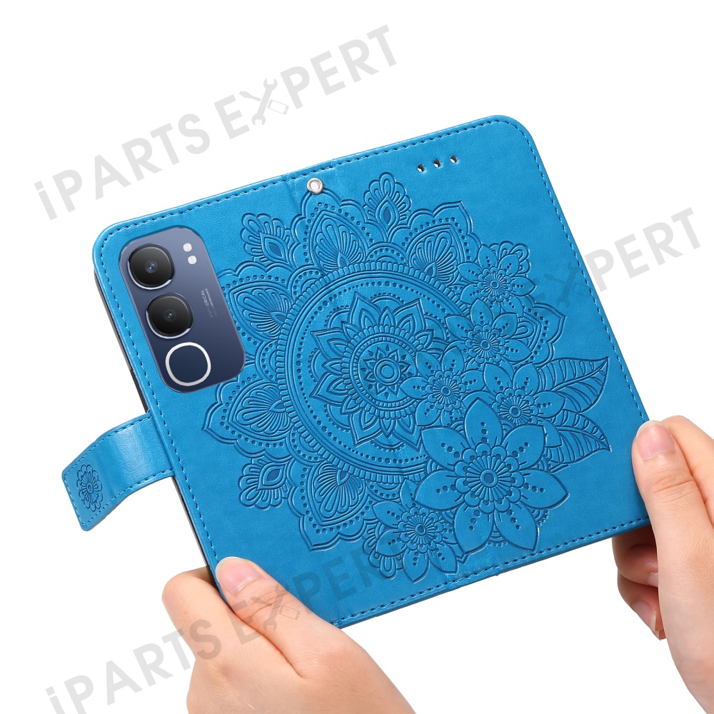 For vivo Y29 5G / Y19s 4G Case Floral Pattern PU Leather Wallet Stand Phone Cover - Blue