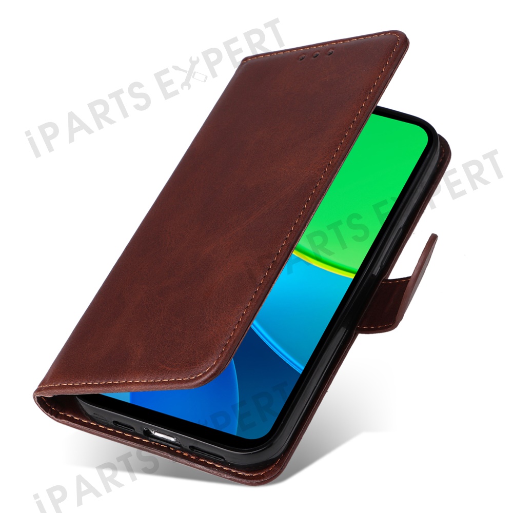 For vivo Y29 5G / Y19s 4G Case Wallet PU Leather Folio Flip Phone Cover - Brown