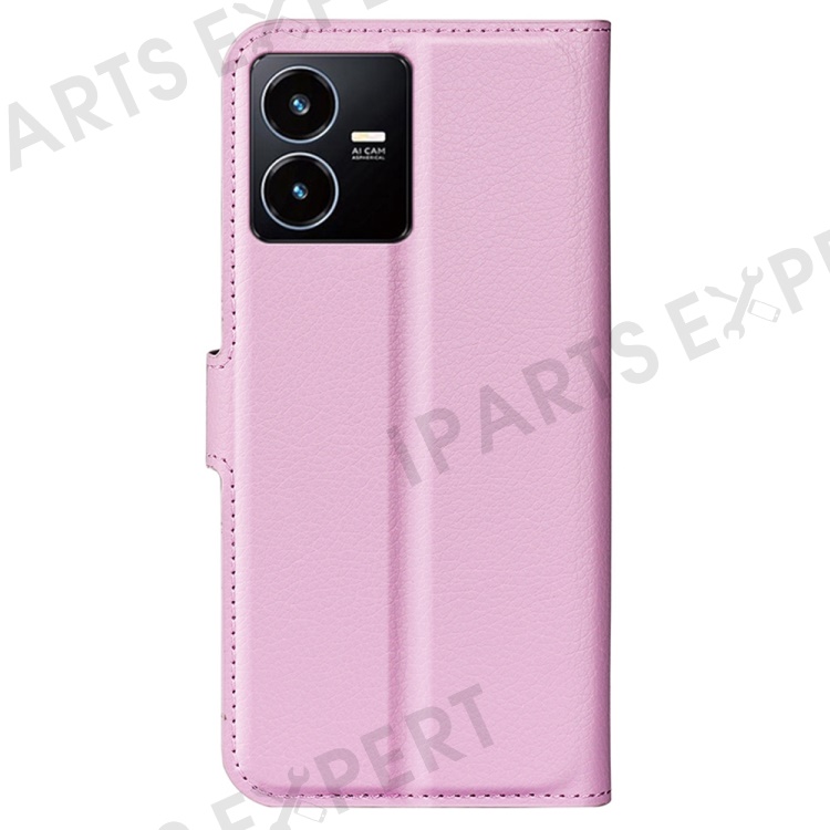 For vivo Y22s 4G Litchi Texture PU Leather + TPU Full Protection Case Wallet Stand Phone Cover - Pink