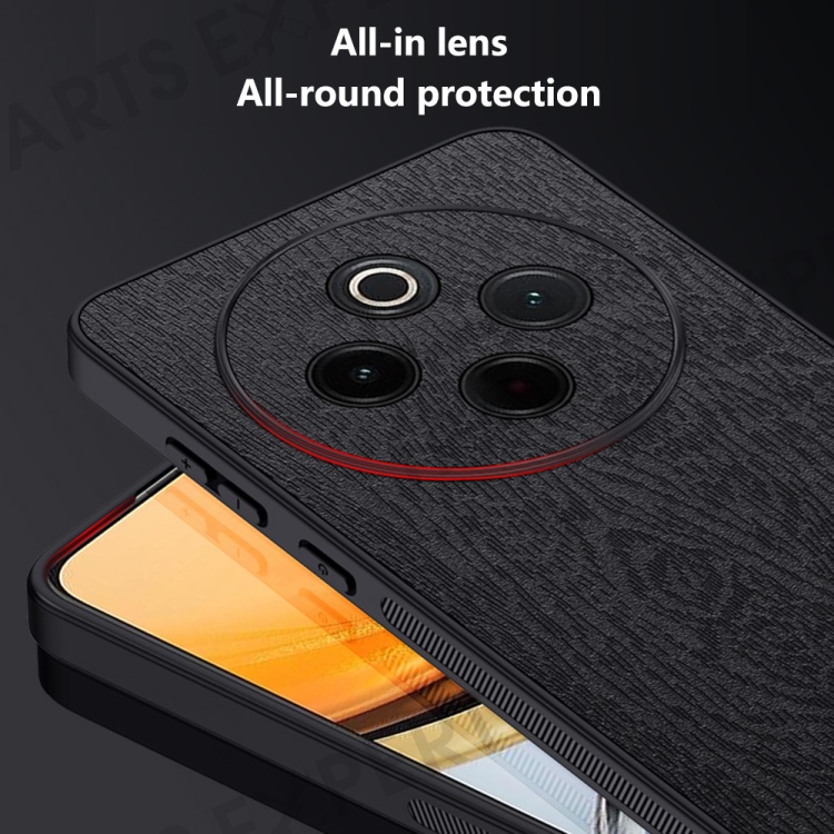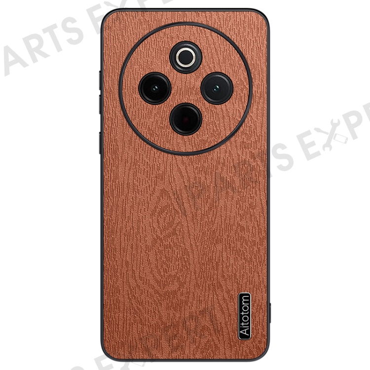 For vivo Y300 Pro 5G Case Wood Texture PU Leather Coated PC+TPU Phone Cover - Brown