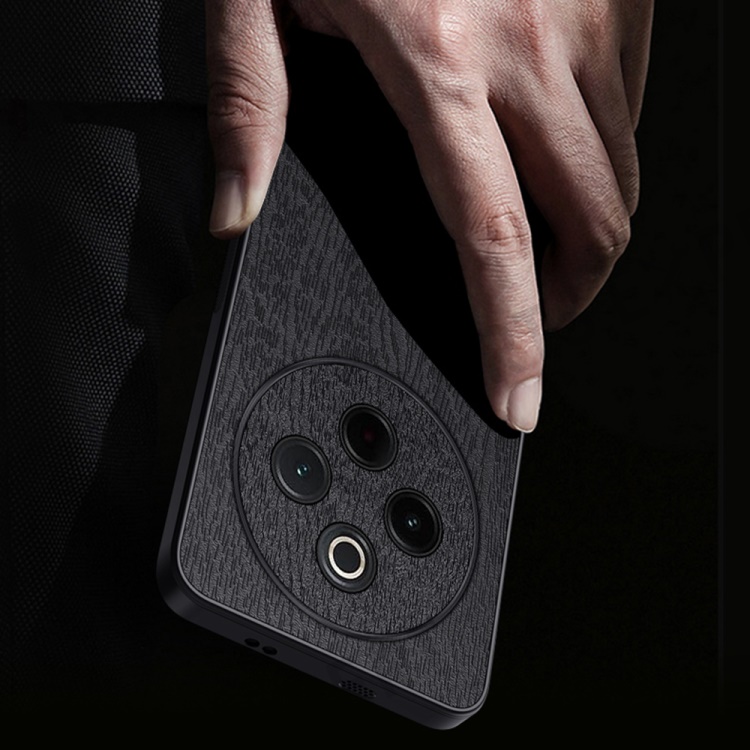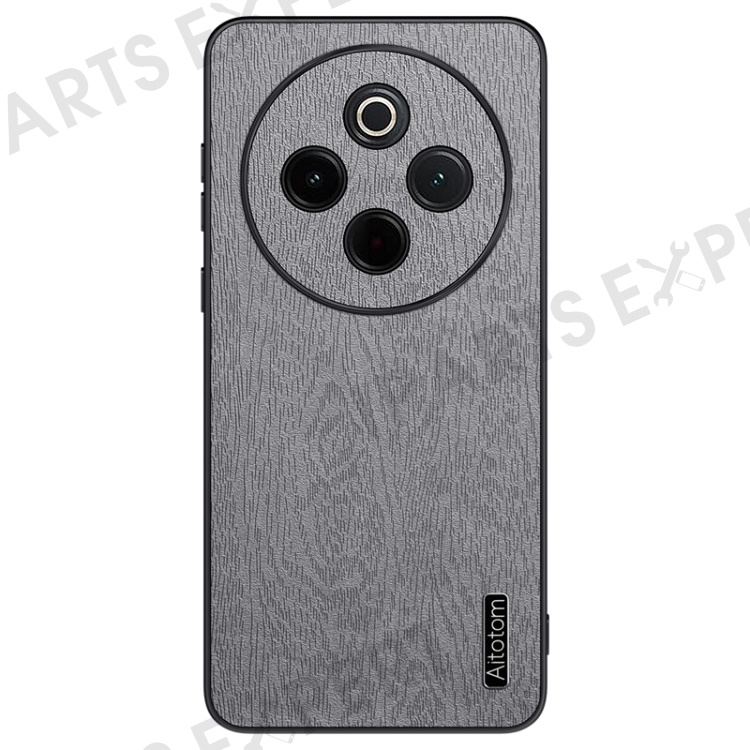 For vivo Y300 Pro 5G Case Wood Texture PU Leather Coated PC+TPU Phone Cover - Grey