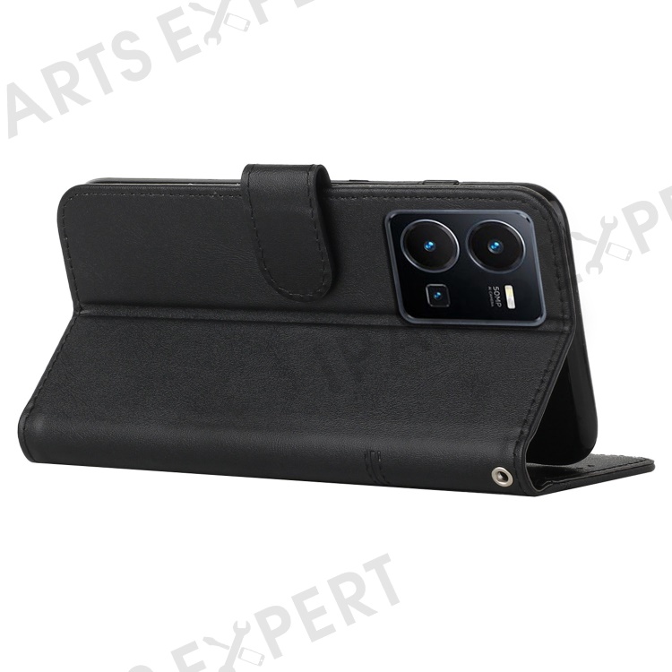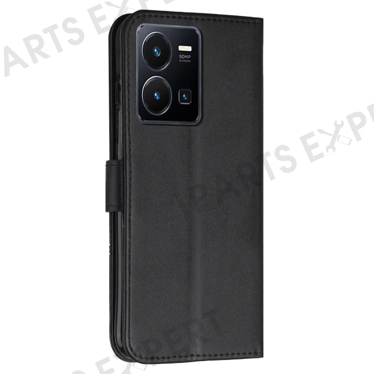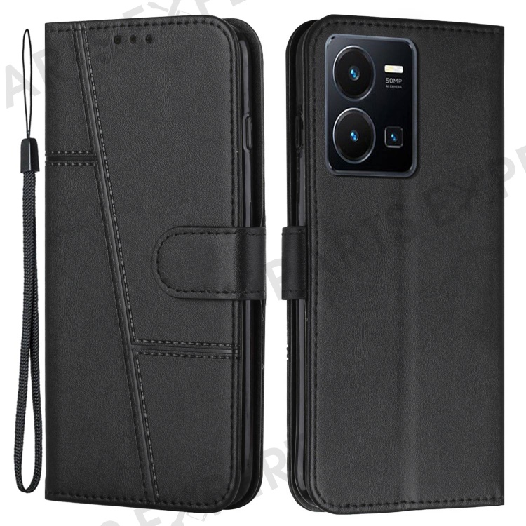 For vivo Y35 4G (2022) / Y22 4G / Y22s 4G Stitching PU Leather Wallet Phone Case Stand Magnetic Flip Protective Cover with Strap - Black
