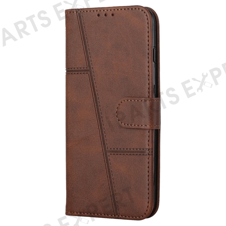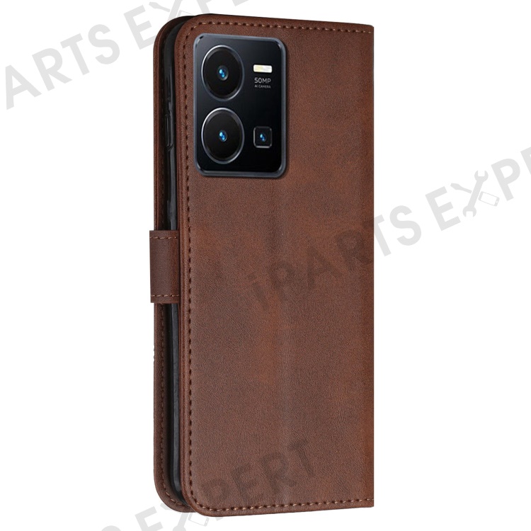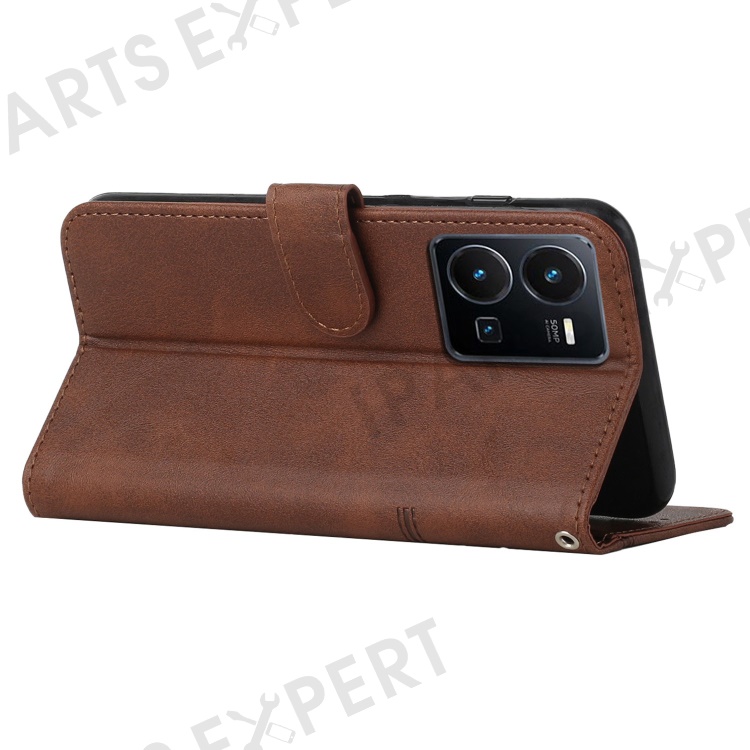 For vivo Y35 4G (2022) / Y22 4G / Y22s 4G Stitching PU Leather Wallet Phone Case Stand Magnetic Flip Protective Cover with Strap - Brown