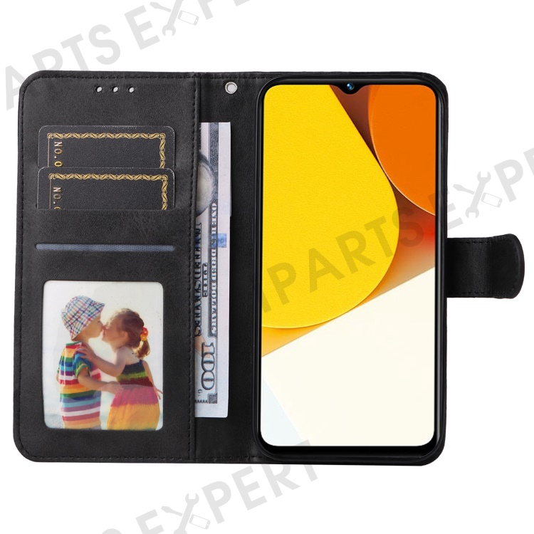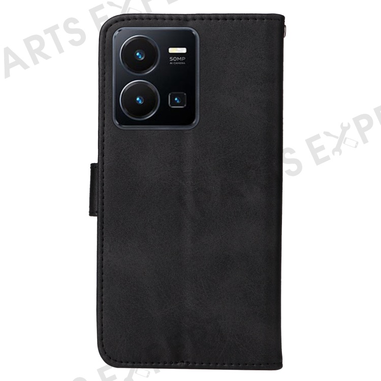 For vivo Y35 4G (2022) / Y22s 4G / Y22 4G Calf Texture Anti-scratch PU Leather Case Stand Wallet Phone Cover with Wrist Strap - Black