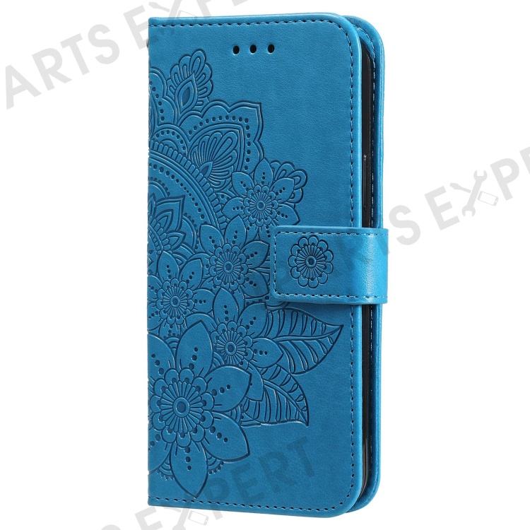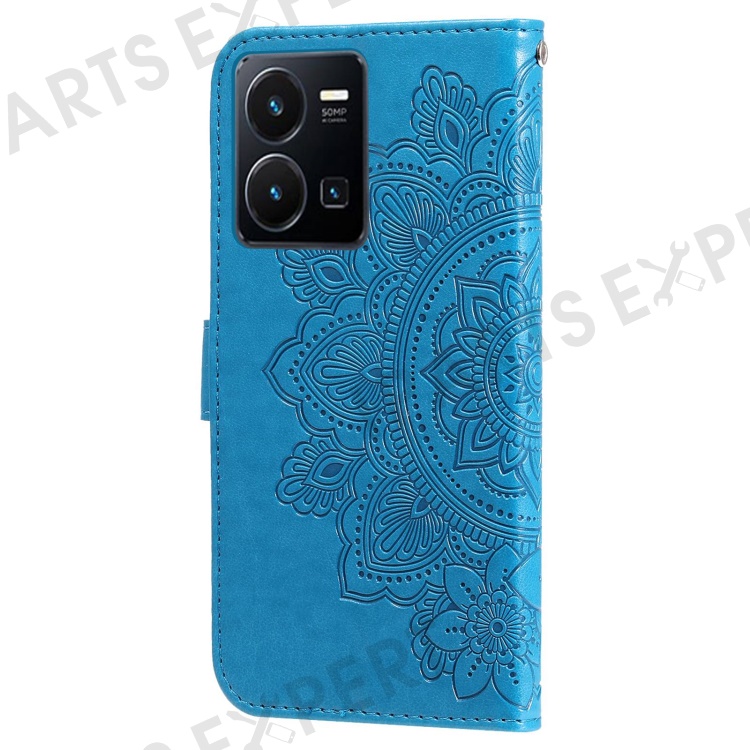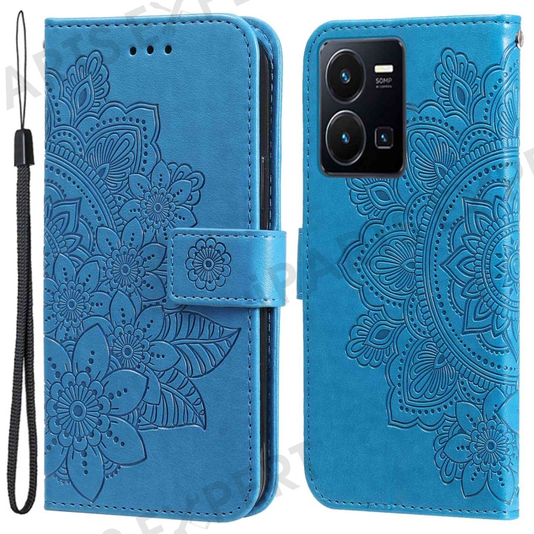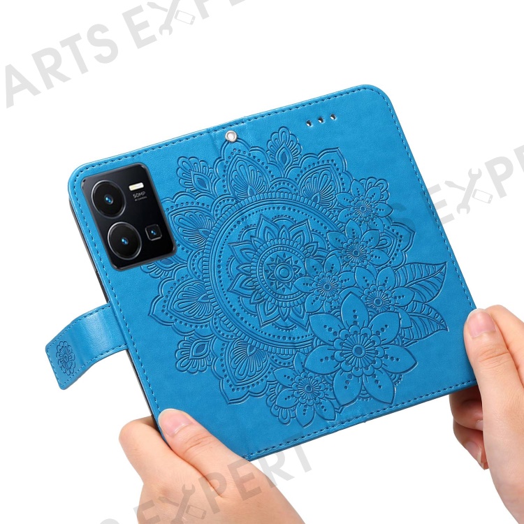 For vivo Y35 4G (2022) / Y22s 4G / Y22 4G Case Floral Pattern PU Leather Wallet Stand Phone Cover - Blue