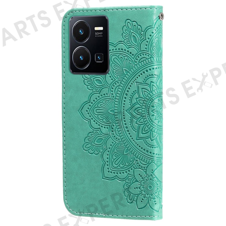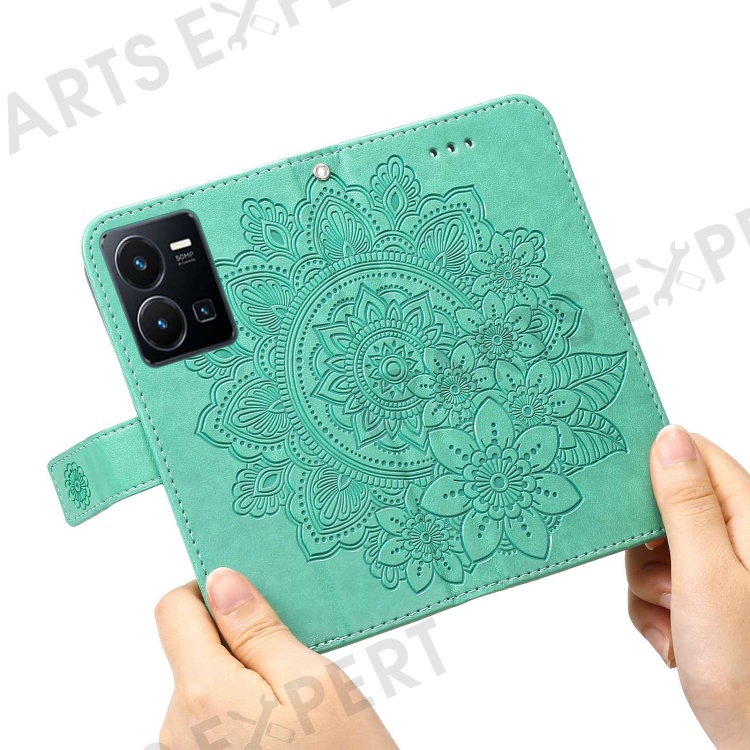 For vivo Y35 4G (2022) / Y22s 4G / Y22 4G Case Floral Pattern PU Leather Wallet Stand Phone Cover - Green