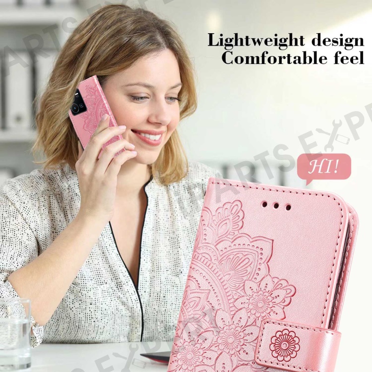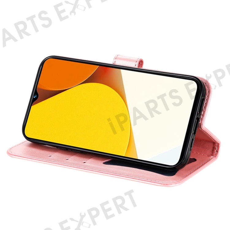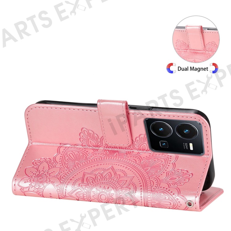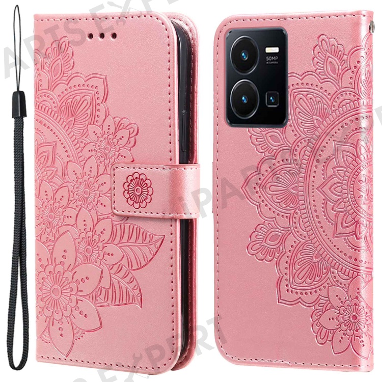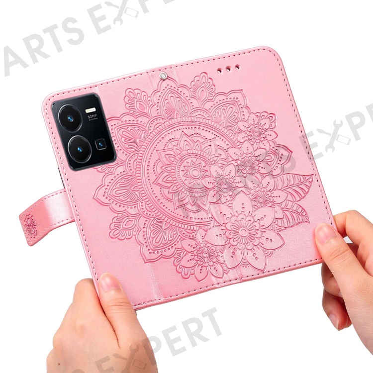 For vivo Y35 4G (2022) / Y22s 4G / Y22 4G Case Floral Pattern PU Leather Wallet Stand Phone Cover - Rose Gold