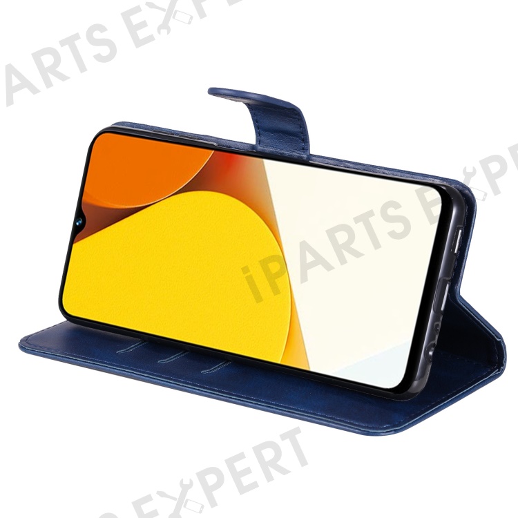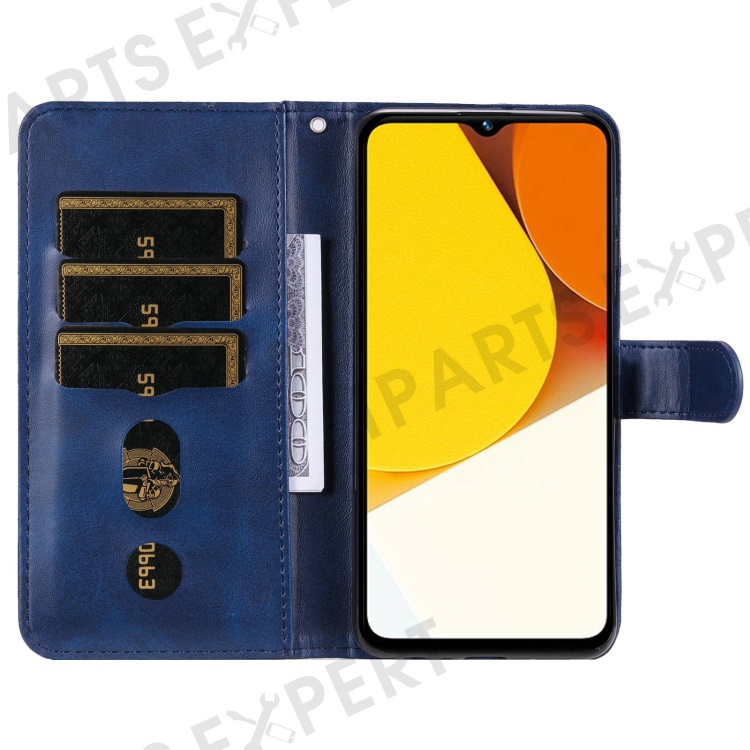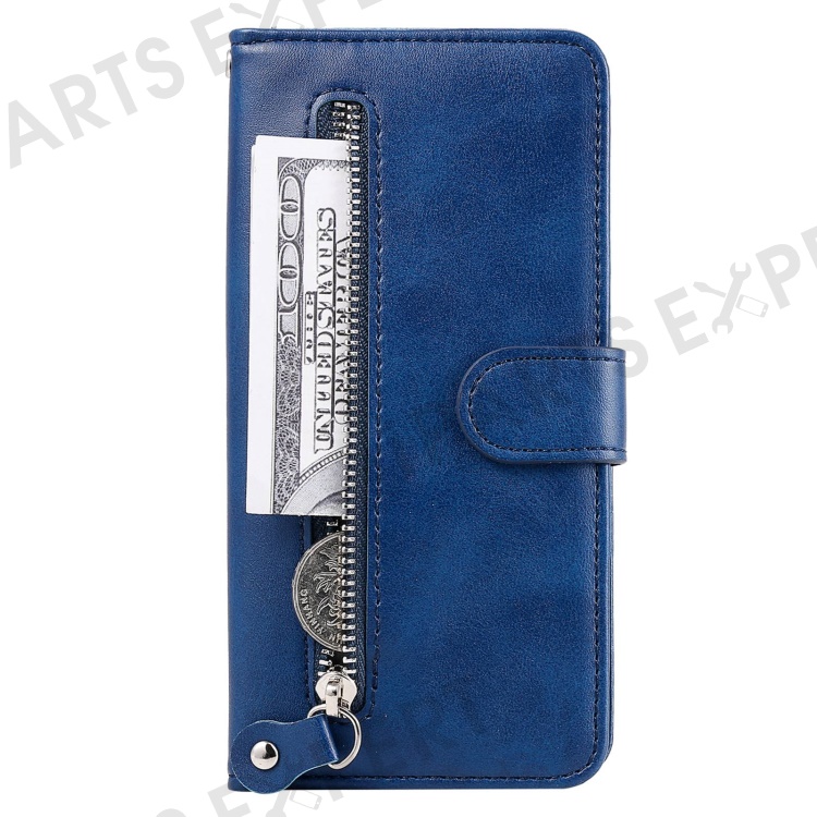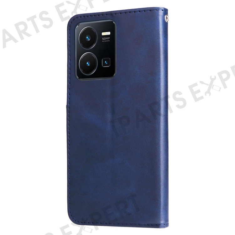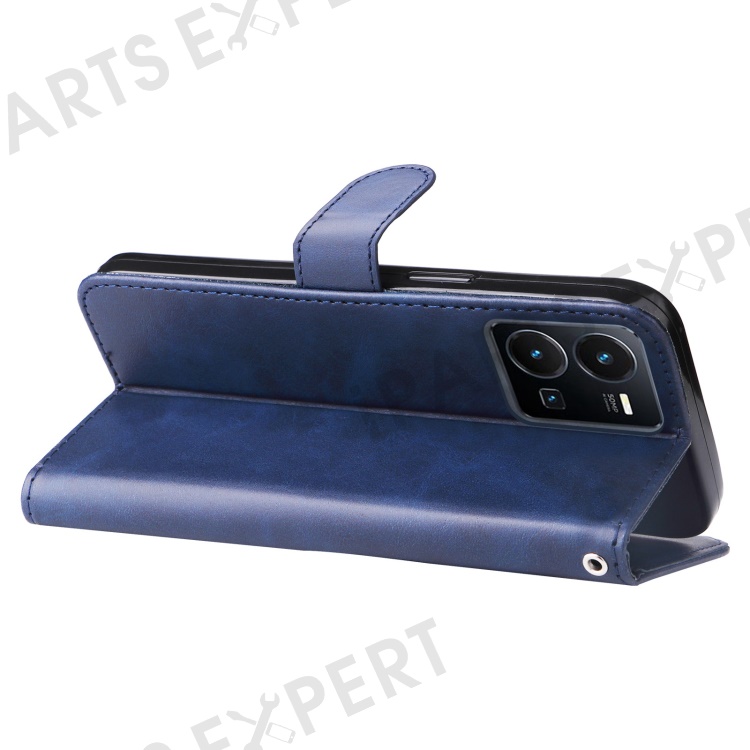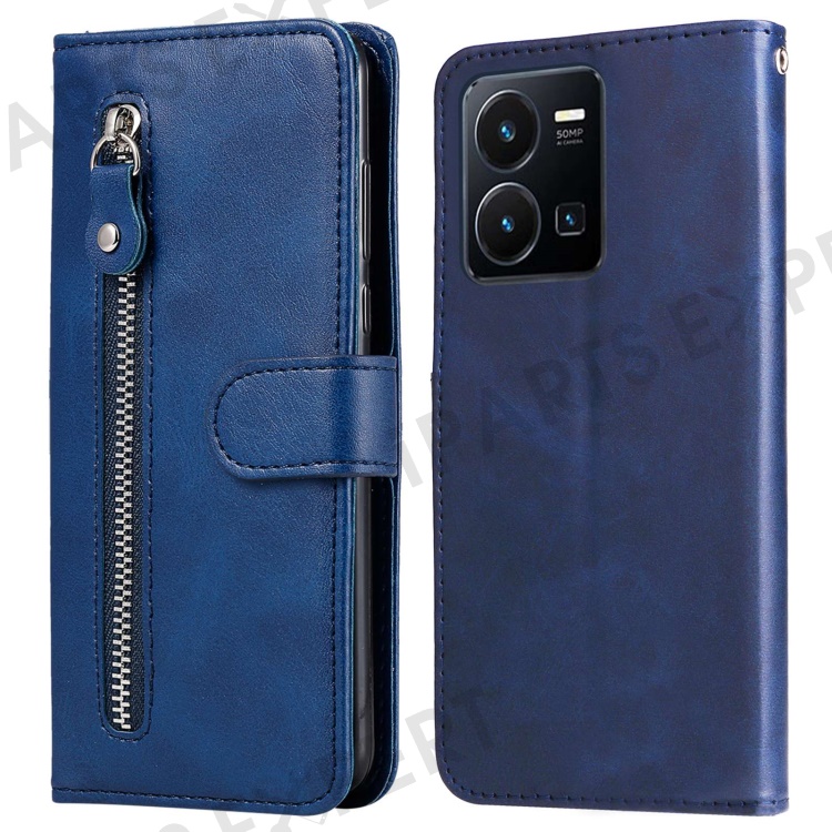 For vivo Y35 4G (2022) / Y22s 4G / Y22 4G Zipper Pocket Calf Texture PU Leather Magnetic Clasp Case Wallet Stand Phone Cover - Blue