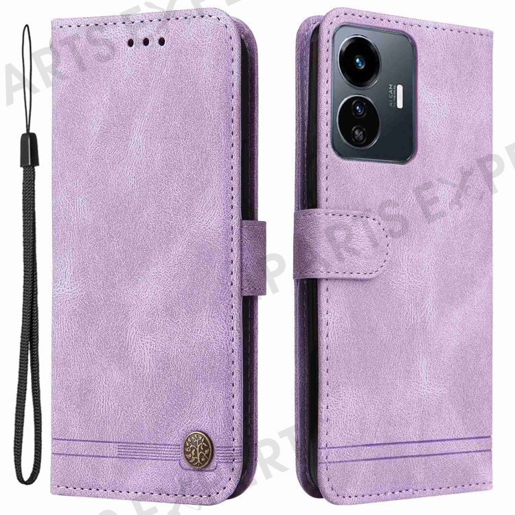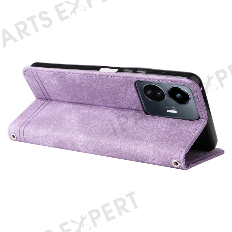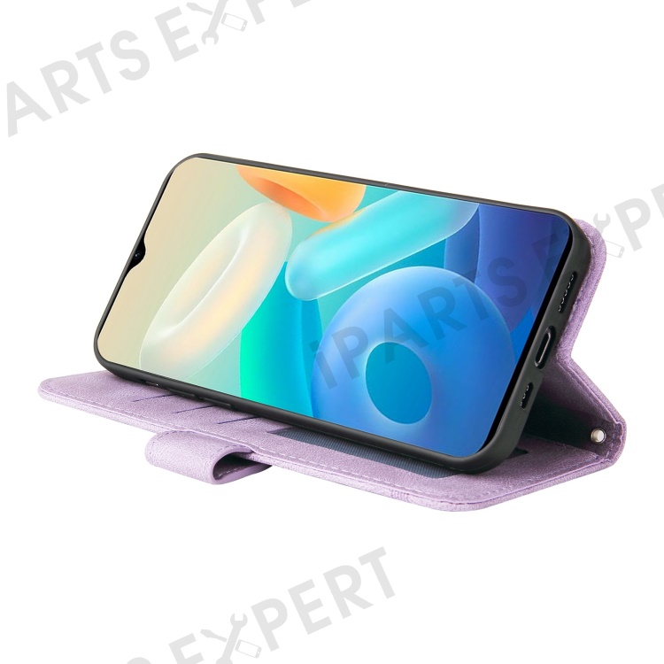 For vivo Y77 5G / Y77e 5G / Y77e (t1) 5G / iQOO Z6 Lite 5G Leather Wallet Cases Skin Touch Phone Cover Stand with Strap - Purple