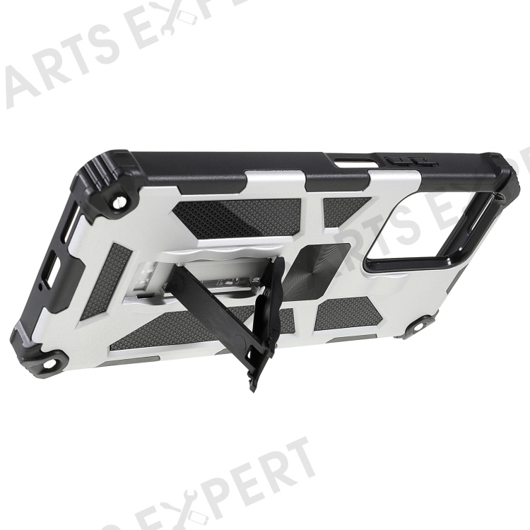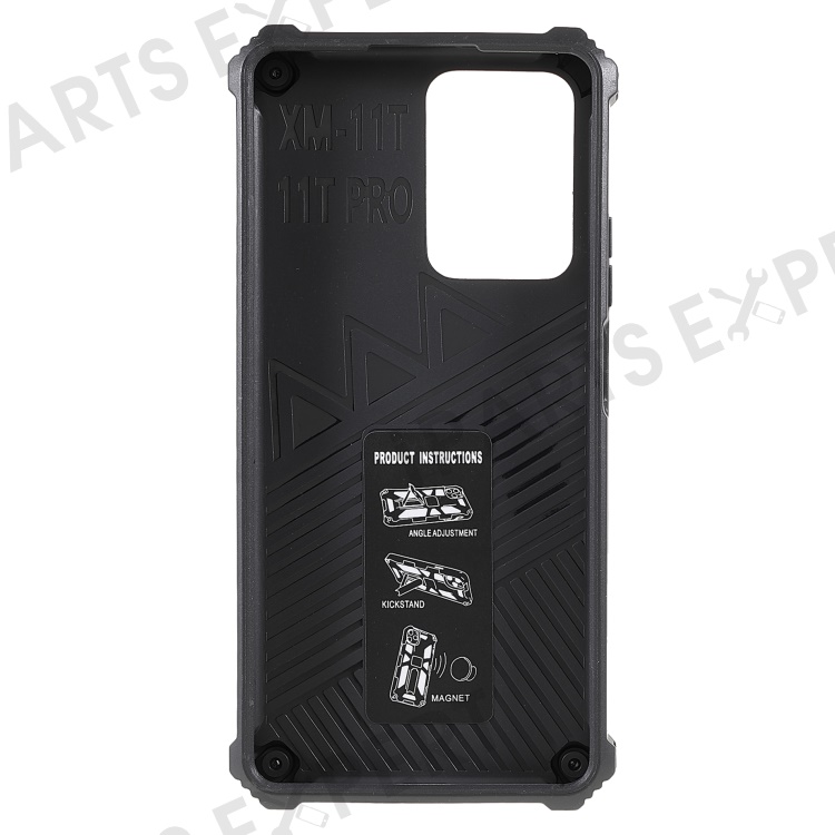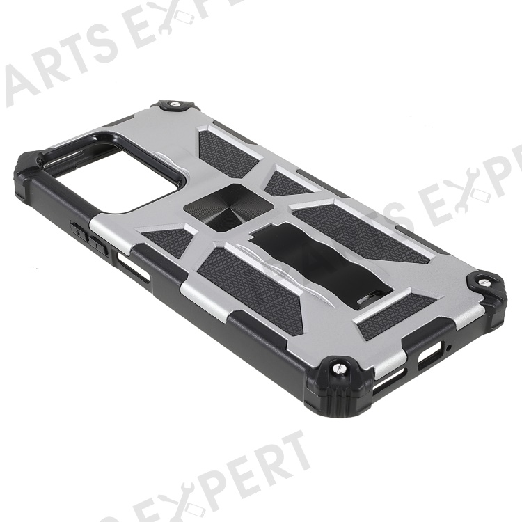 For Xiaomi 11T/11T Pro Military Grade Built-in Kickstand Hybrid Hard PC Soft TPU Anti-fall Protective Phone Case Cover - Silver
