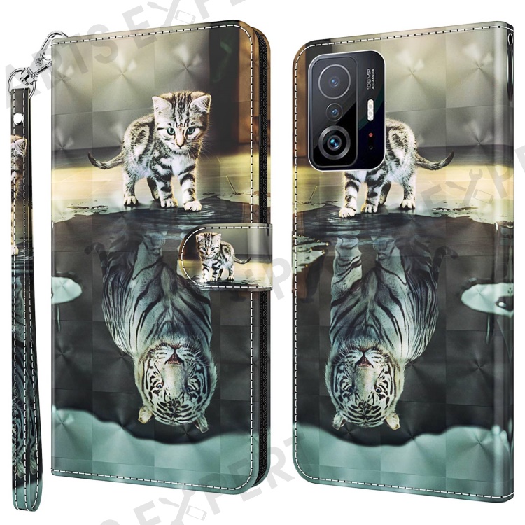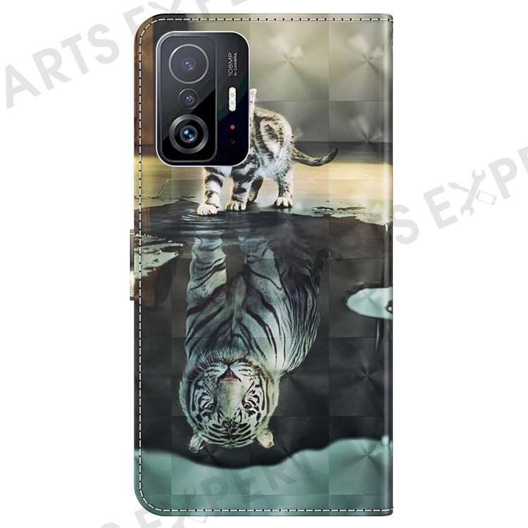 For Xiaomi 11T 5G / 11T Pro 5G PU Leather Flip Case Elegant 3D Pattern Printing Magnetic Closure Stand Wallet Phone Cover with Strap - Cat and Tiger
