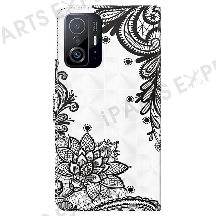 For Xiaomi 11T 5G / 11T Pro 5G PU Leather Flip Case Elegant 3D Pattern Printing Magnetic Closure Stand Wallet Phone Cover with Strap - Lace Flower
