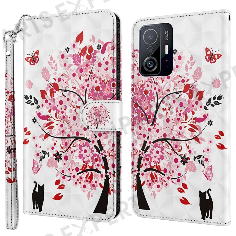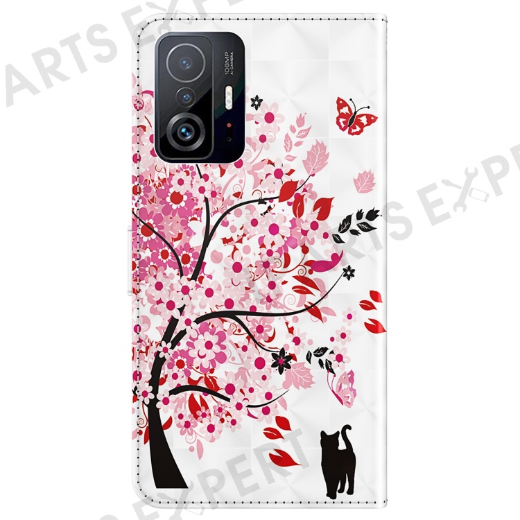 For Xiaomi 11T 5G / 11T Pro 5G PU Leather Flip Case Elegant 3D Pattern Printing Magnetic Closure Stand Wallet Phone Cover with Strap - Wish Tree