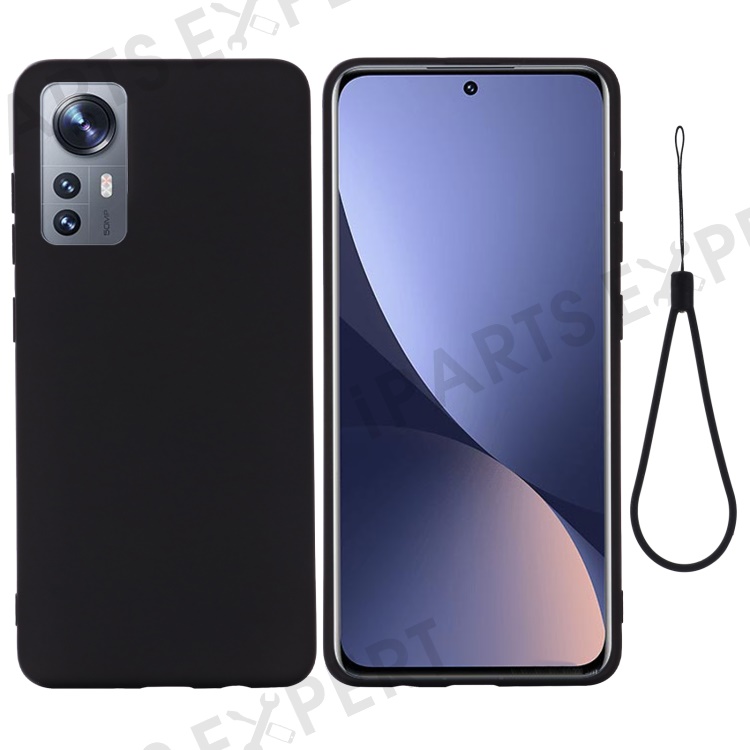For Xiaomi 12 5G/12X 5G/12S 5G Liquid Silicone Phone Protector Solid Color Shockproof Shell Cover with Strap - Black