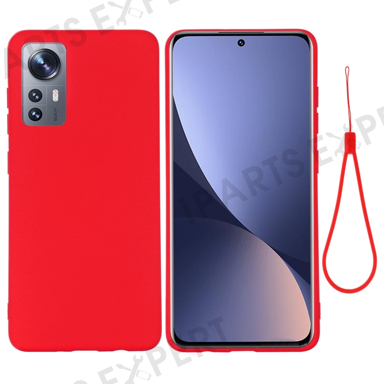 For Xiaomi 12 5G/12X 5G/12S 5G Liquid Silicone Phone Protector Solid Color Shockproof Shell Cover with Strap - Red