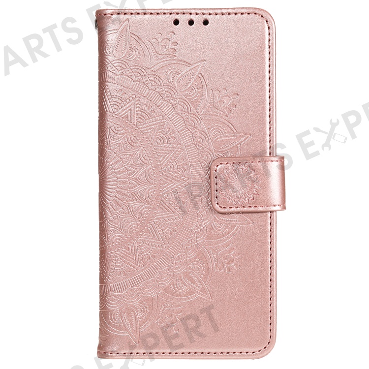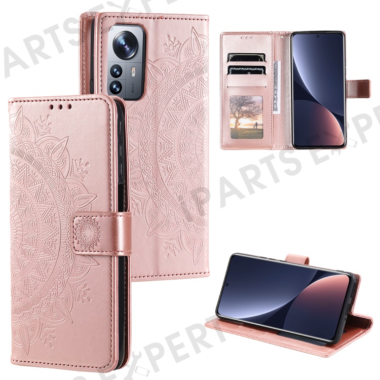 For Xiaomi 12 Pro 5G / 12S Pro 5G /12 Pro (Dimensity) 5G Imprinted Mandala Pattern PU Leather Flip Shockproof Cover Wallet Stand TPU Interior Shell with Strap - Rose Gold