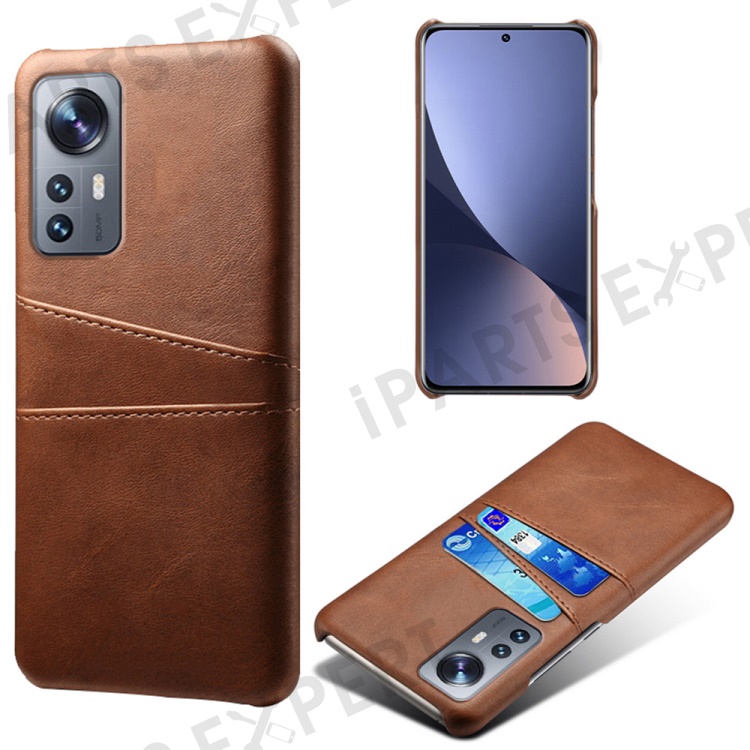 For Xiaomi 12 Pro 5G / 12S Pro 5G /12 Pro (Dimensity) 5G PU Leather + Hard PC Thin Durable Protective Phone Case with Two Card Slot Holders - Brown