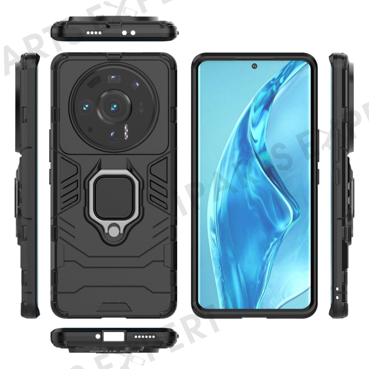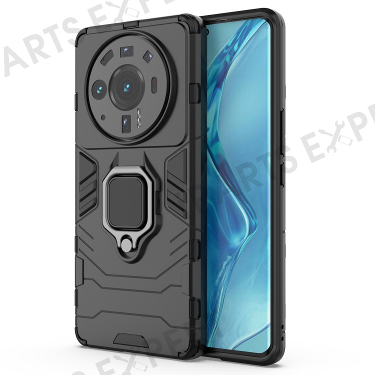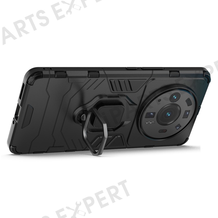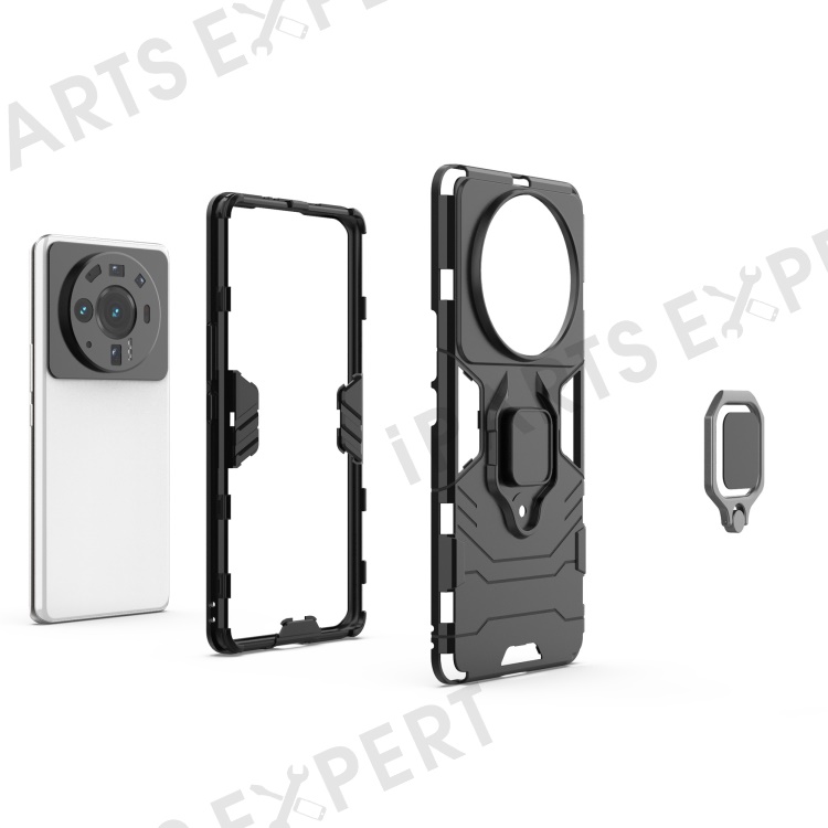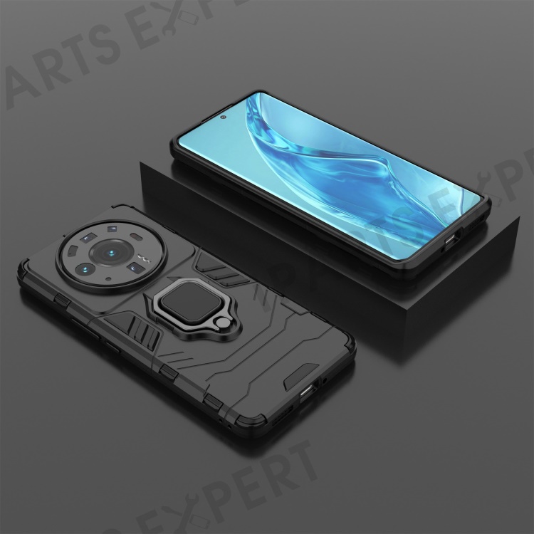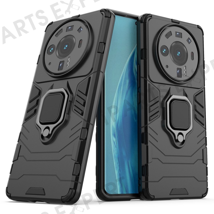 For Xiaomi 12S Ultra 5G Ring Kickstand Phone Case Flexible TPU Hard PC Anti-Slip Rugged Protective Cover - Black