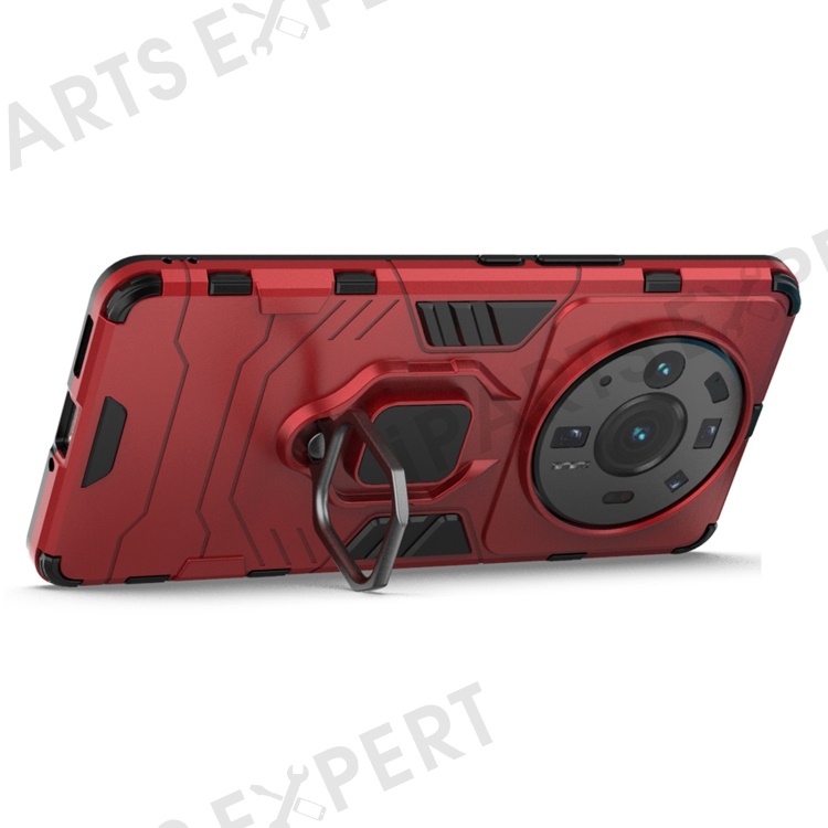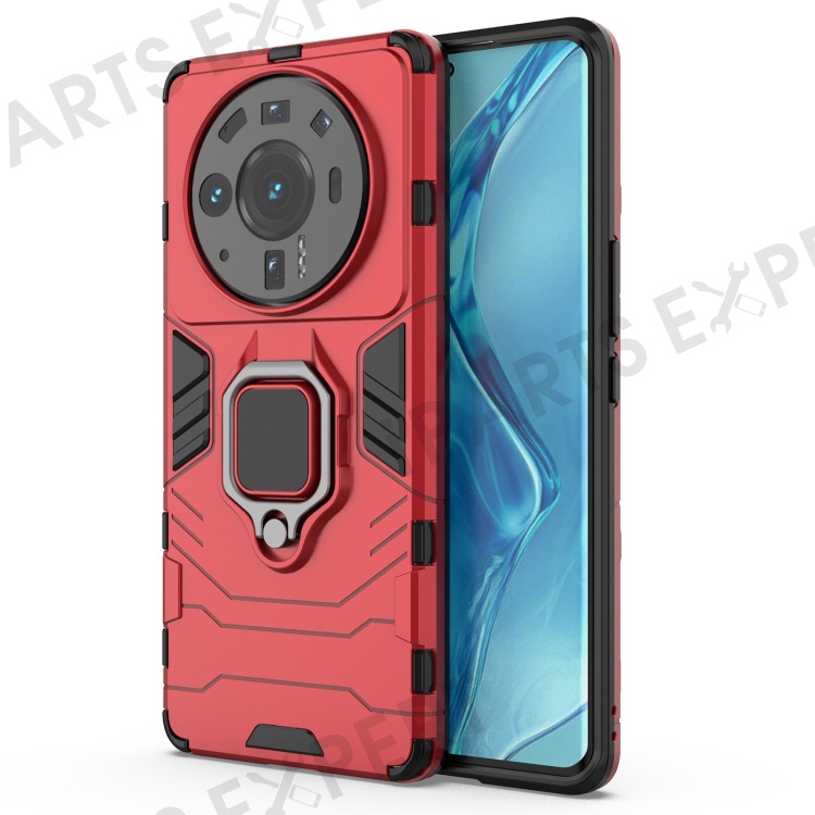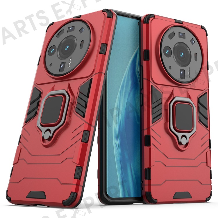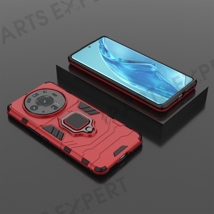 For Xiaomi 12S Ultra 5G Ring Kickstand Phone Case Flexible TPU Hard PC Anti-Slip Rugged Protective Cover - Red
