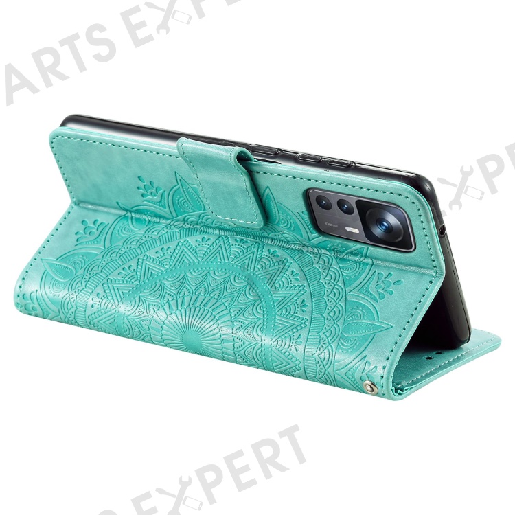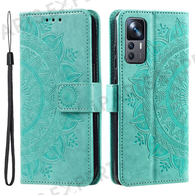 For Xiaomi 12T 5G / Redmi K50 Ultra 5G / 12T Pro 5G Mandala Flower Pattern Imprinted Folding Stand PU Leather Case TPU Inner Shell Wallet Flip Cover with Strap - Green